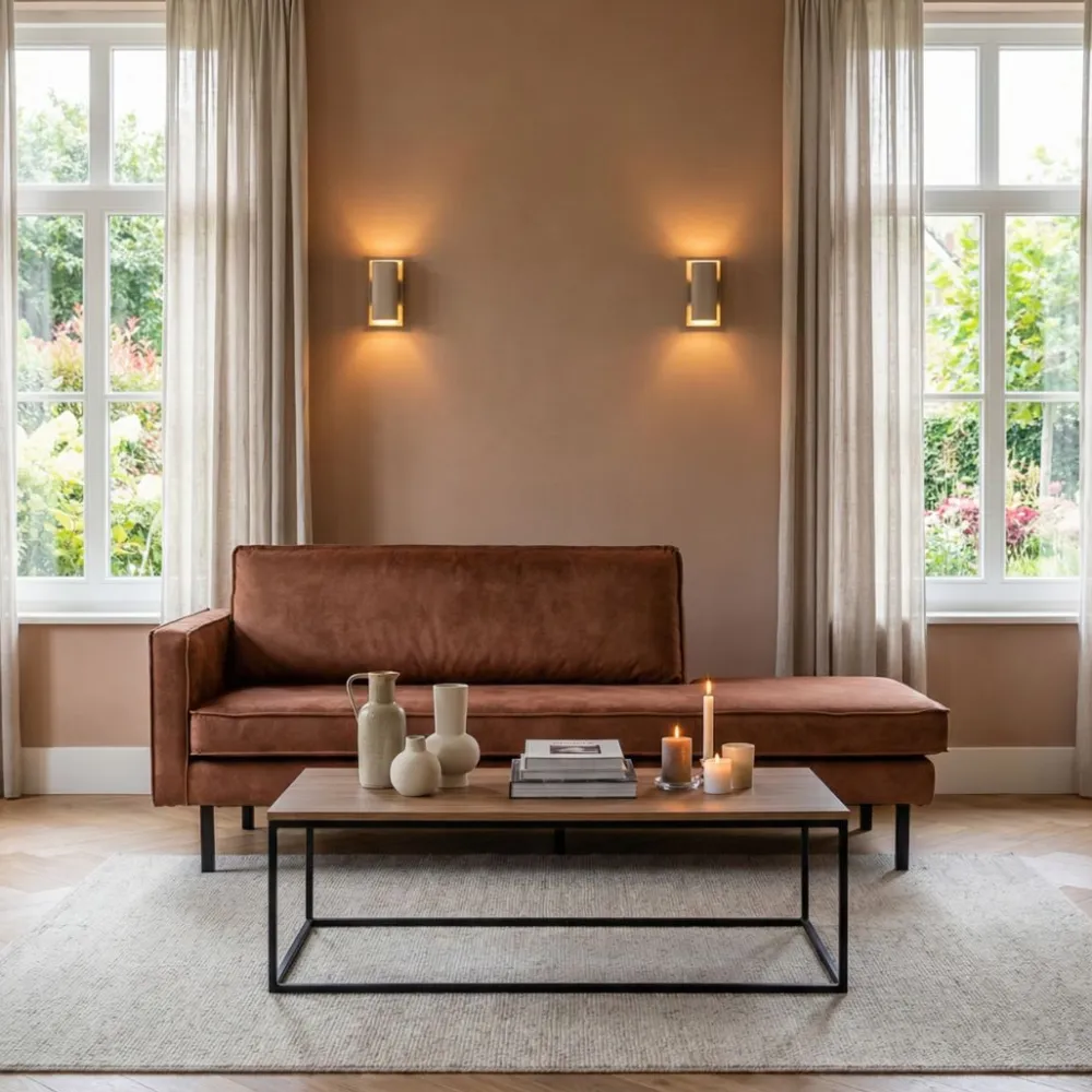 De zwarte metalen poten geven het ontwerp een moderne, luchtige touch en zorgen voor een stabiele basis. Praktisch is dit daybed ook in gebruik. Je kiest eenvoudig voor een linker- of rechteropstelling, zodat het perfect aansluit bij de indeling van jouw woonruimte.