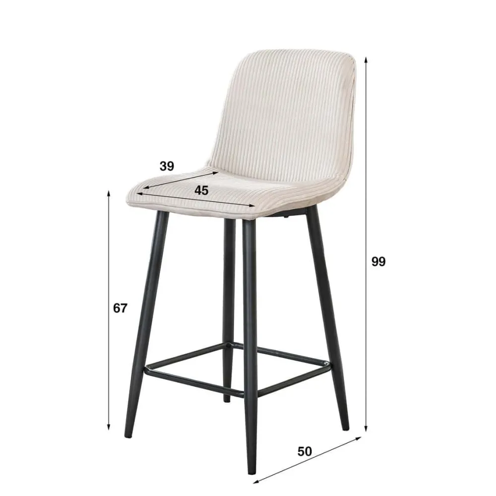 Barstoel Bennie van HUUS is een stoere en comfortabele barkruk met een eigentijdse uitstraling. De zitting is bekleed met ribstof, wat zorgt voor een warme, zachte look en een prettige zitervaring. Het zwarte metalen onderstel geeft de kruk een industriële touch, terwijl de voetensteun extra comfort biedt. Bennie is verkrijgbaar in meerdere kleuren en wordt geleverd per set van twee.