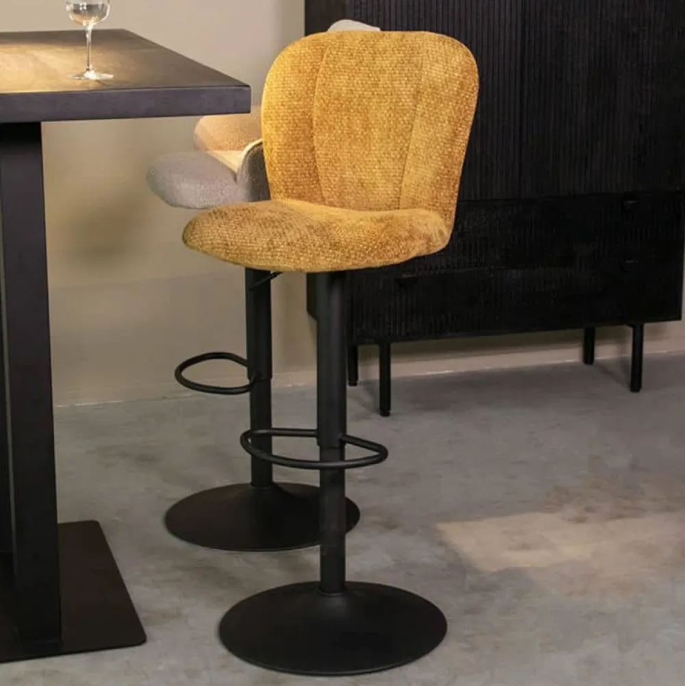 Barstoel Vino is een elegante, in hoogte verstelbare barkruk met een moderne uitstraling. De zitting is bekleed met zachte Elite stof, die niet alleen warm en verfijnd oogt maar ook comfortabel aanvoelt. De licht gebogen rugleuning biedt extra steun en geeft de kruk een verfijnde vorm. Dankzij het gaslift systeem is Vino eenvoudig in hoogte te verstellen, waardoor hij moeiteloos onder verschillende bartafels past. Het zwarte metalen onderstel zorgt voor stabiliteit en een strakke look. Vino is verkrijgbaar in zes stijlvolle kleuren en vormt een tijdloze toevoeging aan elk interieur.
