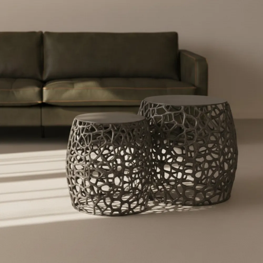 Bijzettafel set/2 maze zandgegoten / Zwart nikkel
