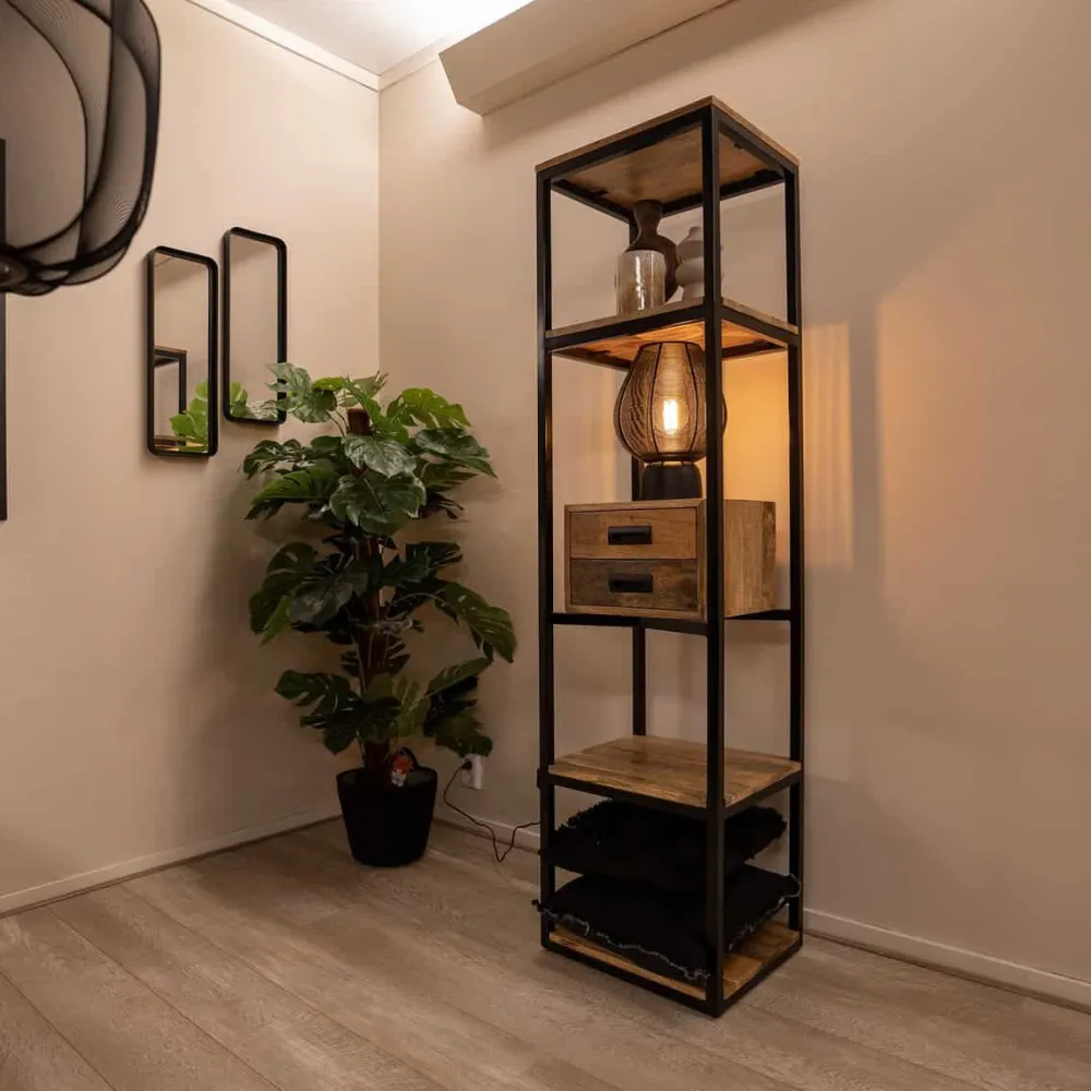 Gemaakt van hoogwaardig mangohout, heeft boekenkast Sem een warme en unieke uitstraling. Mangohout is een levendig materiaal, waardoor elke kast zijn eigen karakter heeft. Naast de stijl voegt het ook een flinke dosis functionaliteit toe, met genoeg ruimte voor boeken, decoraties of andere spullen.