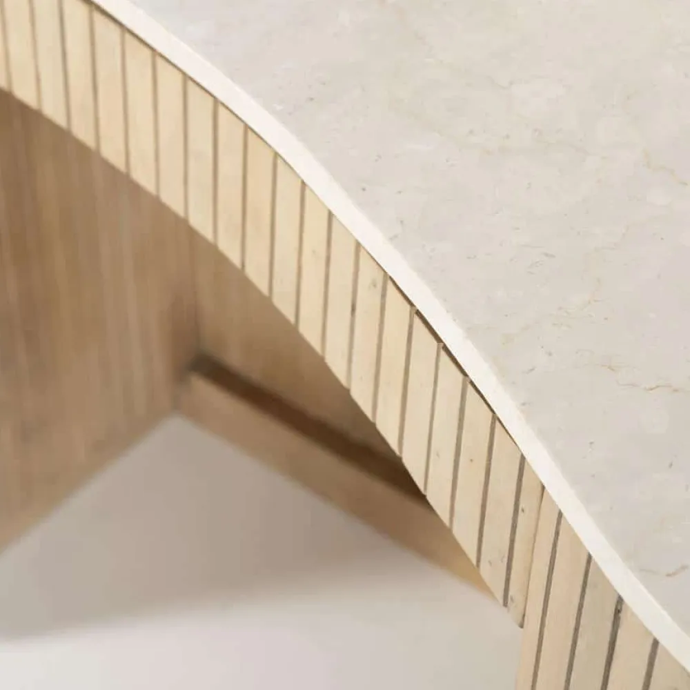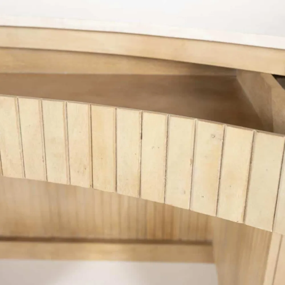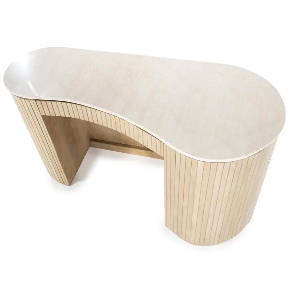 Bureau Kira – een verfijnde combinatie van mangohout en marmer. Met zijn organische vormgeving straalt dit bureau elegantie en natuurlijke charme uit. Ideaal voor een moderne en stijlvolle werkplek!