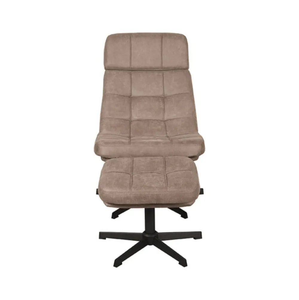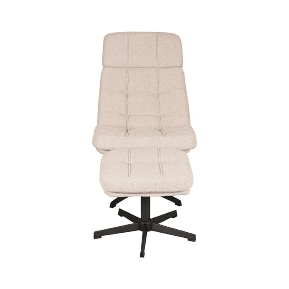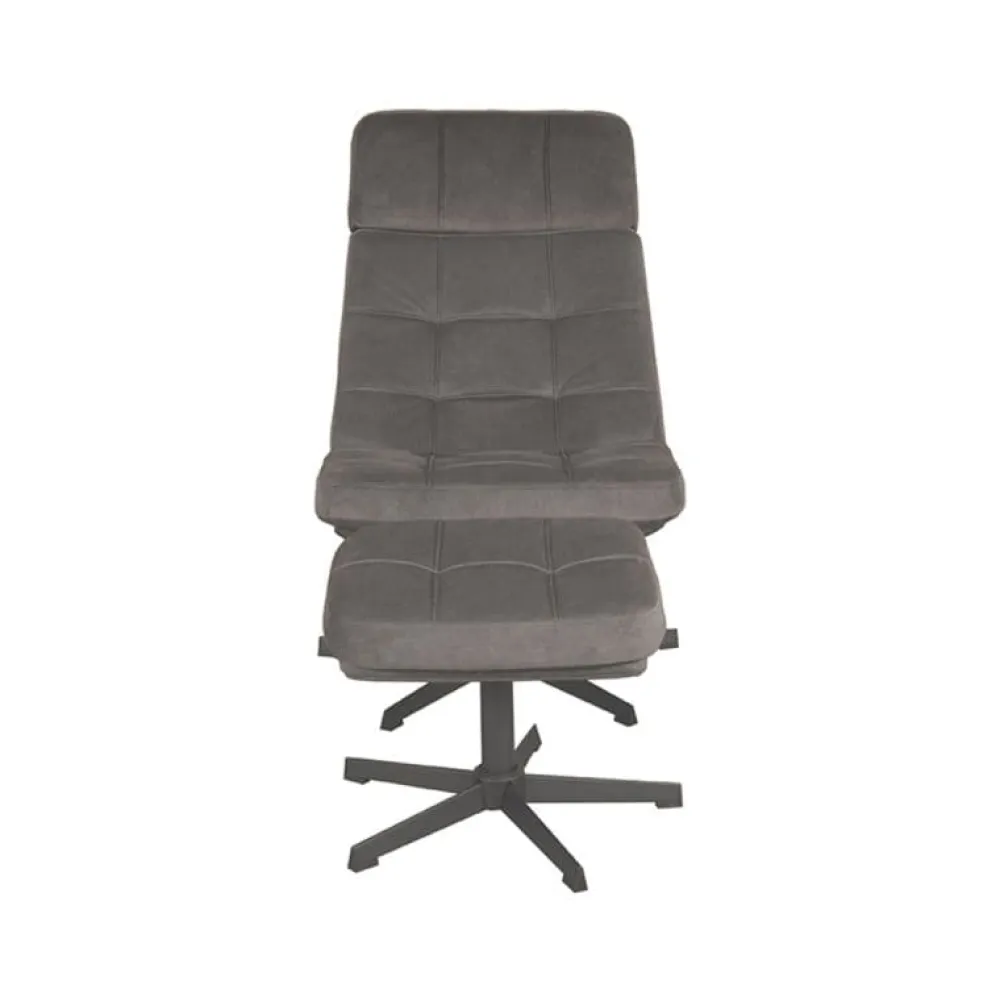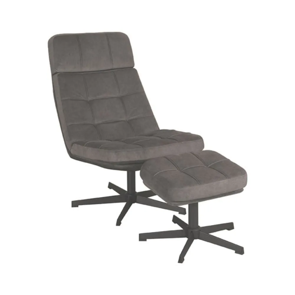 Fauteuil Alvar is een moderne draaifauteuil met een uitnodigend en functioneel design. De ruime zitting, zachte bekleding en comfortabele armleuningen maken deze fauteuil ideaal voor ontspannen momenten in de woonkamer of leeshoek. Alvar wordt geleverd met een bijpassende hocker, waarmee je eenvoudig je benen omhoog legt voor extra comfort. Dankzij de 360 graden draaifunctie en het slanke zwarte onderstel biedt deze fauteuil veel bewegingsvrijheid en een eigentijdse uitstraling.
