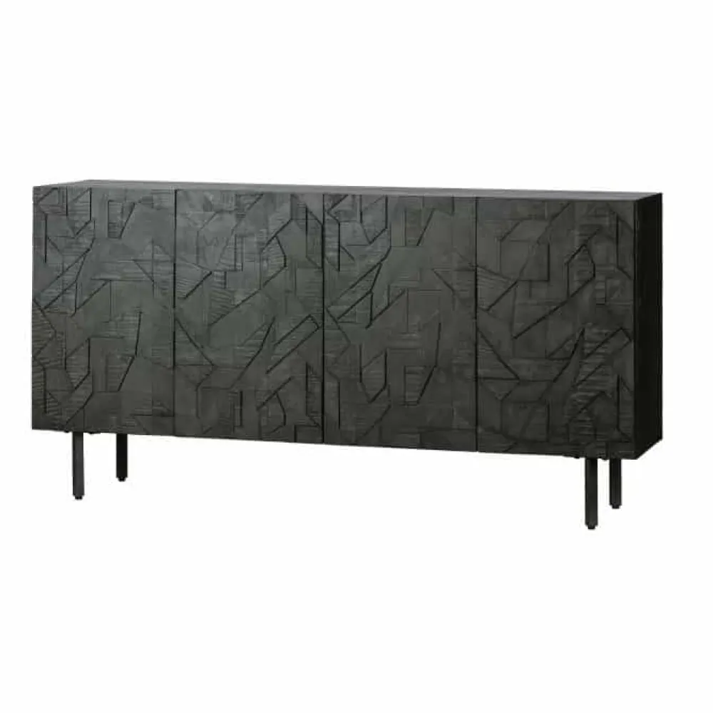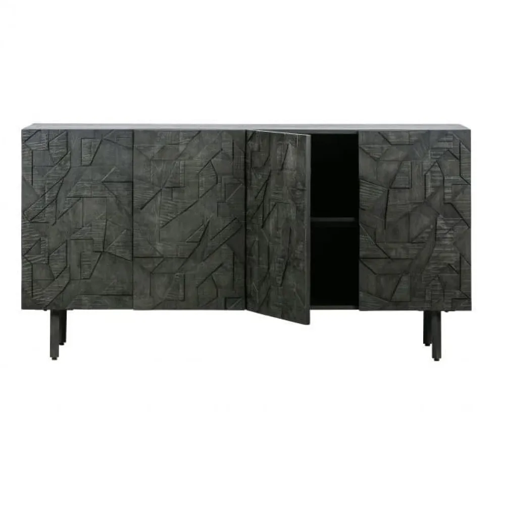 Het dressoir heeft een totale hoogte van 83 cm, is 160 cm breed en 40 cm diep. De metalen poten hebben een hoogte van 18 cm. Het metalen frame is 2×2 cm dik. De vier deuren met houtsnijwerk zijn 65 cm hoog, 39,5 cm breed en 2 cm dik. De deurtjes beschikken over een softclose systeem. De inhoud van de kast is in twee grote vakken verdeeld met elk een 78 cm brede legplank. Deze legplank heeft een diepte van 33,5 cm, aan de achterzijde is een kier van 1,5 cm dus kleine items kunnen op de onderste plank belanden. De open vakken hebben in een inhoud van (hxbxd) 30x78x35 cm.