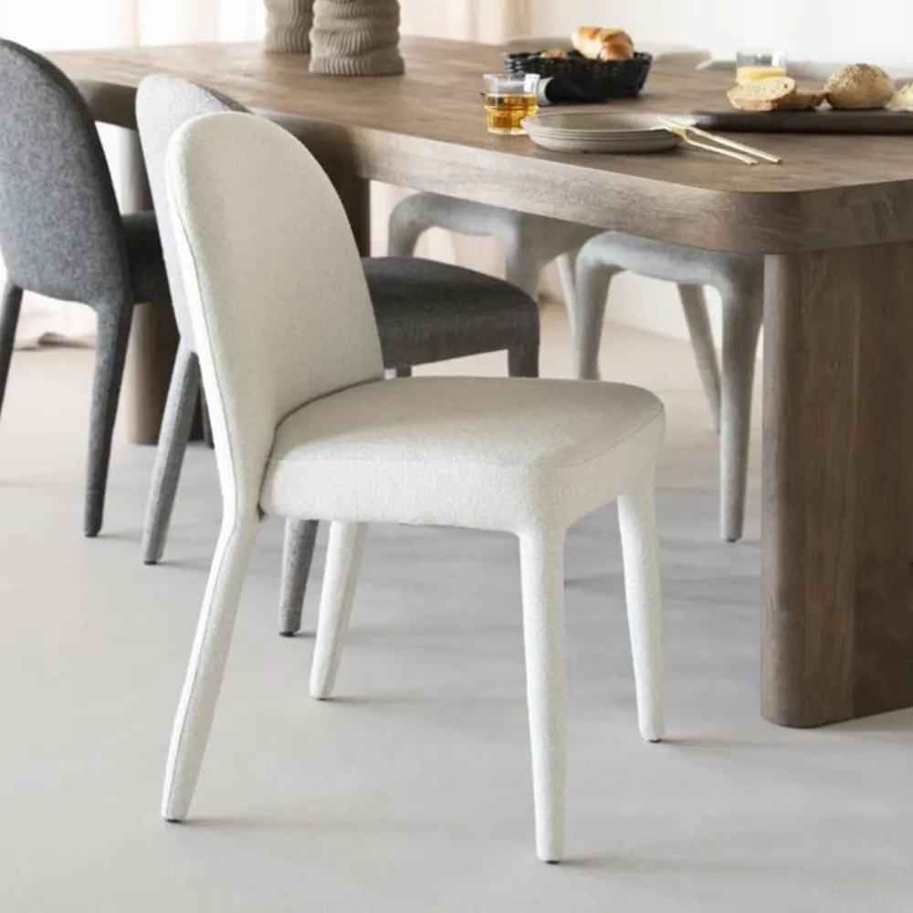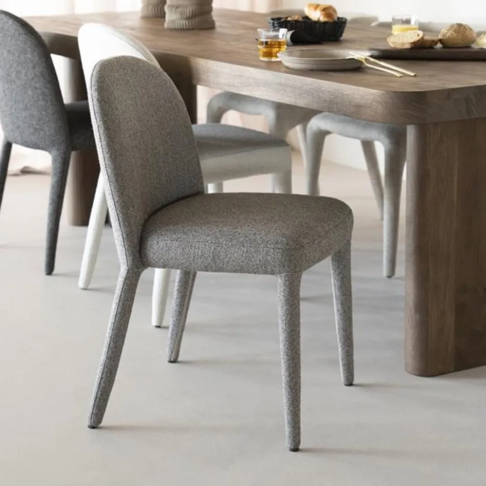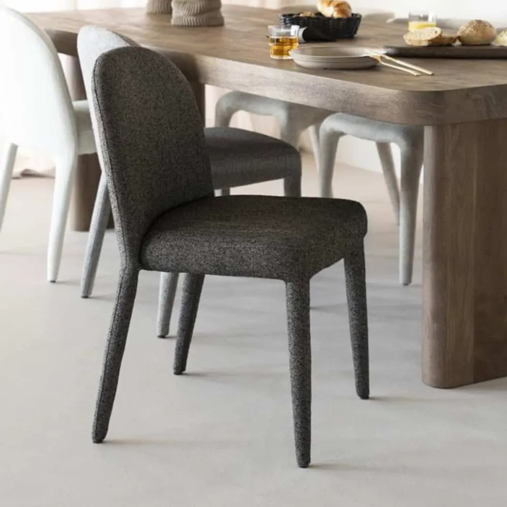 Eetkamerstoel Jaxx van Eleonora is een moderne, volledig gestoffeerde stoel met een zachte uitstraling en aangenaam zitcomfort. De afgeronde vormen en rijke bekleding zorgen voor een warme, uitnodigende sfeer aan tafel. Jaxx is verkrijgbaar in drie stijlvolle kleuren — beige, taupe en bruin — die moeiteloos aansluiten bij zowel neutrale als warme interieurs. Dankzij het eigentijdse ontwerp laat de stoel zich uitstekend combineren met diverse tafels, van hout tot staal.