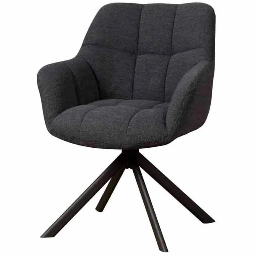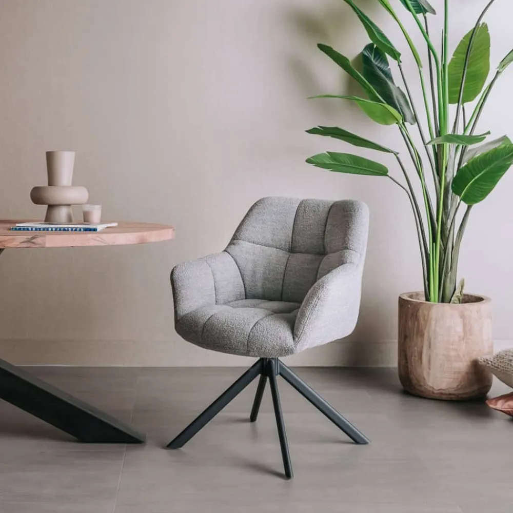 Eetkamerstoel Alba is een moderne draaistoel met een zachte en uitnodigende uitstraling. De zitting en rugleuning zijn comfortabel gewatteerd en bekleed met een luxe textuurstof die verkrijgbaar is in vier stijlvolle kleuren. De organische vorm van de arm- en rugleuning zorgt voor een omarmend zitgevoel. Dankzij de 360 graden draaibare zitting en het zwarte metalen spinframe is Alba niet alleen comfortabel, maar ook bijzonder functioneel. De stoel wordt geleverd per twee stuks.