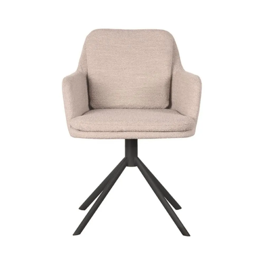Eetkamerstoel Joy van het merk LABEL51 is een draaibare armstoel met een eigentijds ontwerp en een hoog comfortniveau. De zitting is voorzien van een vast kussen op de rug en het zitvlak, wat zorgt voor een luxe en uitnodigende uitstraling. Dankzij de 360 graden draaifunctie en het zwarte metalen spinonderstel is Joy niet alleen stijlvol, maar ook zeer functioneel. De stoel is verkrijgbaar in diverse hoogwaardige stoffen, waaronder taupekleurig micro suède, beige fluweel (Elegance) en naturel bouclé.