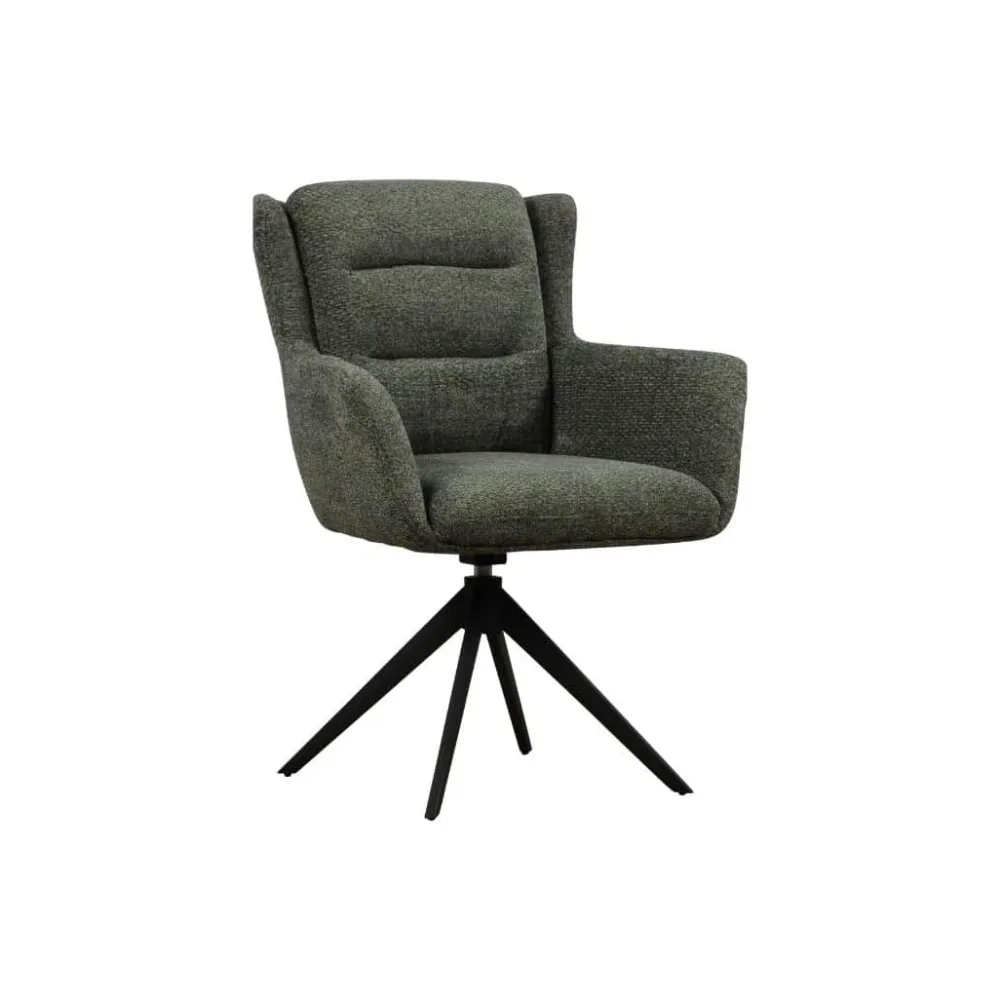 Eetkamerstoel Marijn is een eigentijdse stoel met een stoer karakter en verrassend comfort. De zitting is bekleed met een zachte stof en verkrijgbaar in meerdere kleuren, zodat je altijd een variant vindt die past bij jouw interieur. Het zwarte metalen onderstel met kruisvormige poten zorgt voor een krachtige uitstraling. Dankzij de draaifunctie is Marijn bovendien extra praktisch in gebruik.