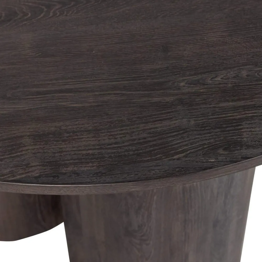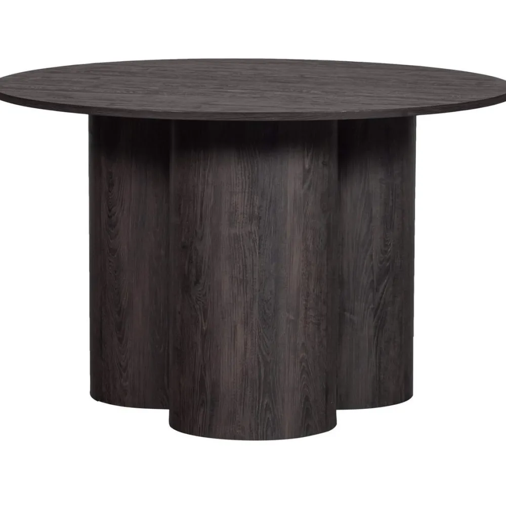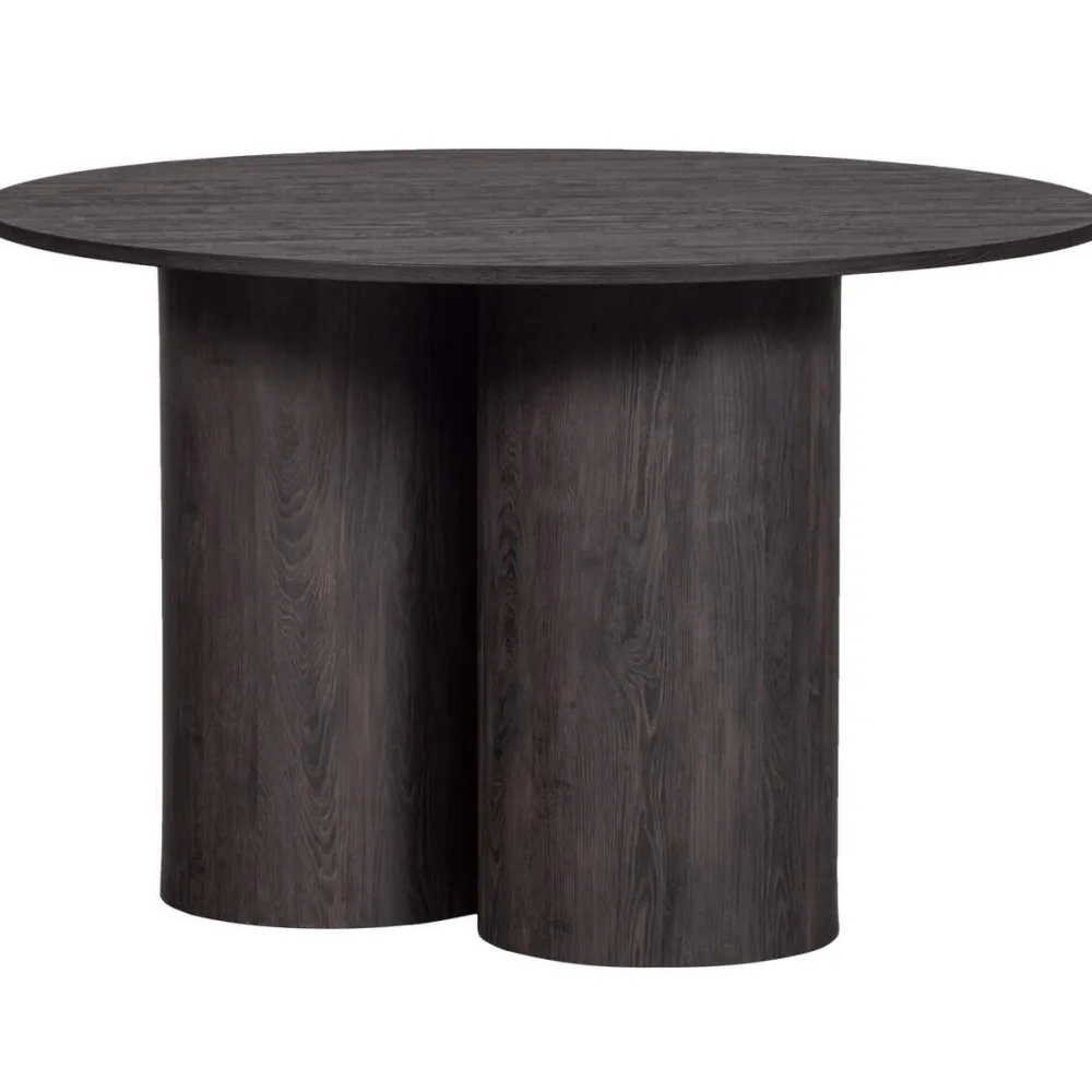 Een uniek en robuust design: dat haal je in huis met deze Oona eettafel. De ronde eettafel komt uit de Exclusive collectie van het Nederlandse interieurmerk WOOOD. De tafel is vervaardigd uit MDF, met een tafelblad dat is afgewerkt met 3D papier. De donkerbruine finish met duidelijke houtnerven maakt dat de eettafel een warme uitstraling heeft en goed past in een botanisch, retro of boho interieur. Het MDF plaatmateriaal uit onze collecties wordt gevormd uit geperste houtvezels welke onder druk worden verkleefd met behulp van hars. Hierdoor heeft dit materiaal een zeer glad oppervlakte. 3D papier is een materiaal om een driedimensionaal effect of textuur te creëren op bijvoorbeeld een tafelblad. Dit kan gedaan worden door het papier in lagen of patronen te snijden, te vouwen of te drukken, zodat er een diepte- of reliëfeffect ontstaat. Een meubel afgewerkt met 3D papier meubelen geeft een artistieke en unieke uitstraling, maar heeft beperkte structurele sterkte en is gevoelig voor vocht en slijtage.
