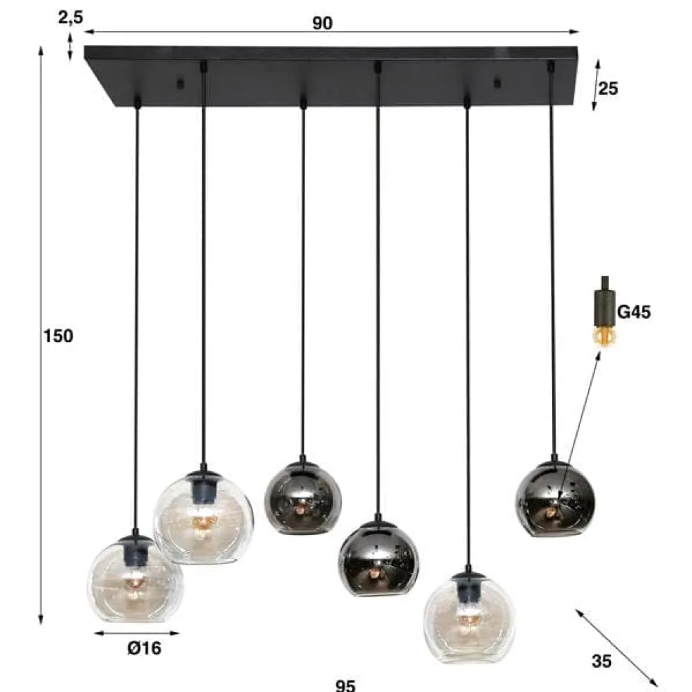 5 lampen: 40x40x180 cm, 6 lampen: 95x35x150 cm, 40x40x180cm, 95x35x150cm