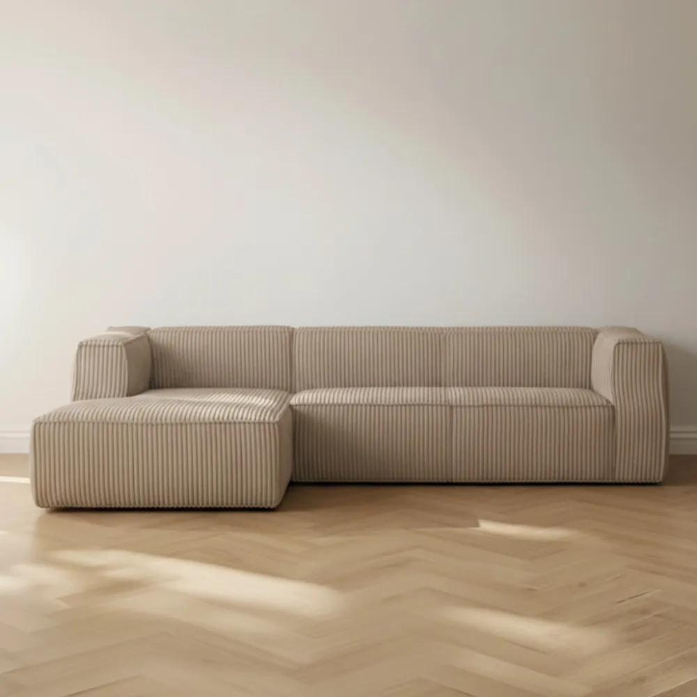 Door de hoekopstelling creëer je eenvoudig een duidelijke en gezellige zithoek. Of je de bank nu plaatst in een ruime woonkamer of gebruikt om de ruimte te structureren, Hoekbank Bean brengt rust, comfort en stijl samen in één geheel.