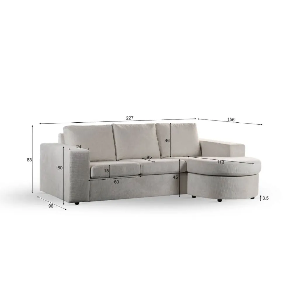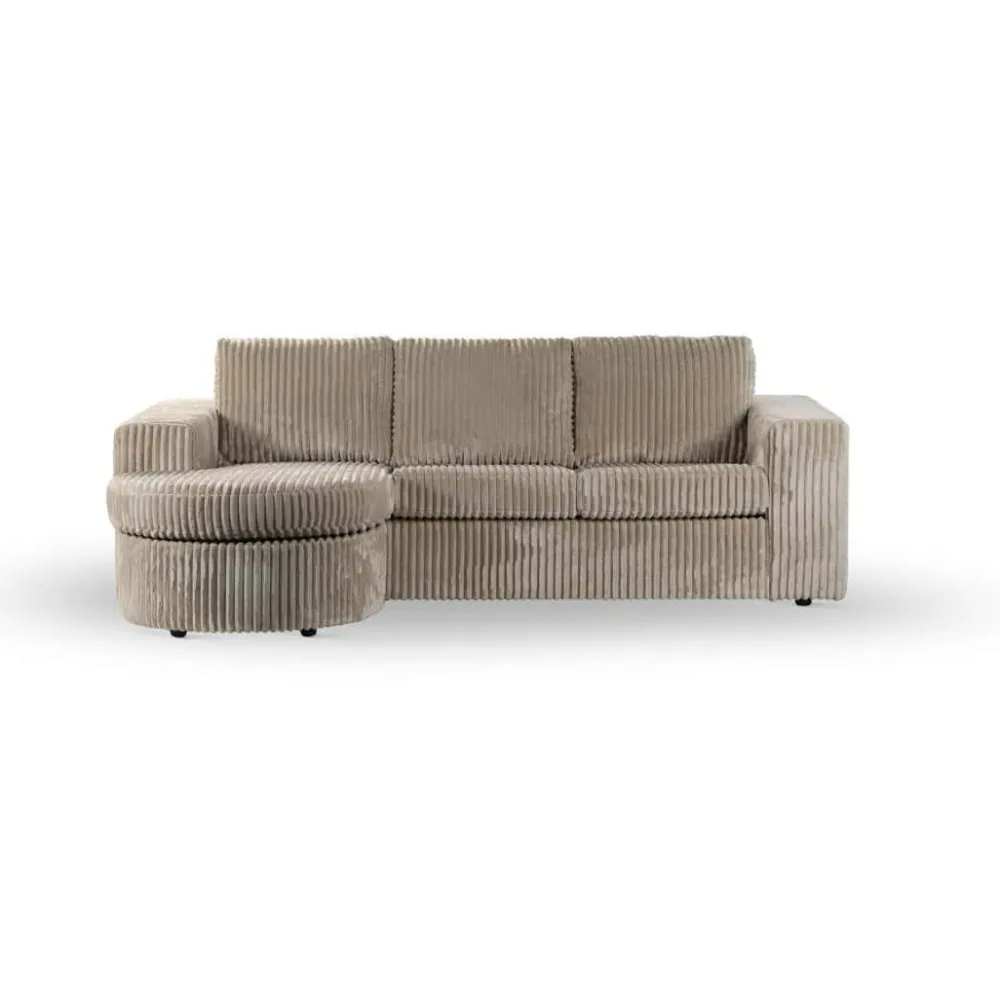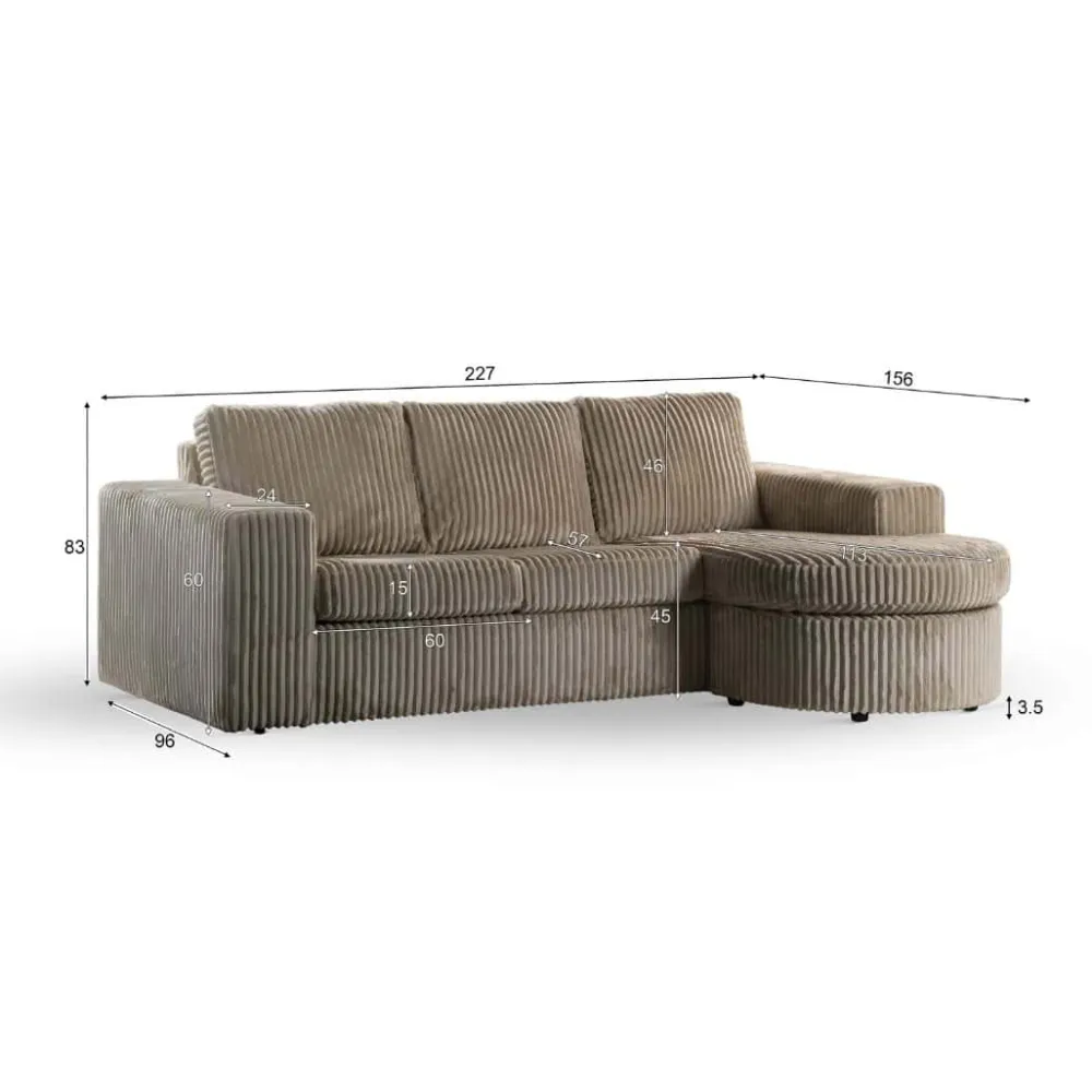 De bank is verkrijgbaar in een zachte stof en in trendy ribstof. Beide varianten voelen aangenaam aan en dragen bij aan het comfortabele zitgevoel. Tegelijk zorgen de vloeiende lijnen en het doordachte ontwerp voor een eigentijdse uitstraling. Zo biedt deze zitbank niet alleen comfort, maar ook een stijlvolle upgrade van je interieur. Gebruik de chaise longue om heerlijk languit te ontspannen of om extra zitruimte te creëren tijdens gezellige momenten samen.