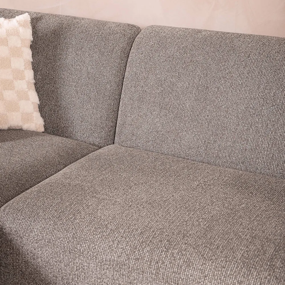 De bank is bekleed met de zijdezachte Savoi chenille stof van 100% polyester. Deze stof voelt comfortabel aan en heeft een zichtbaar weefpatroon met subtiele kleurnuances, wat de bank een stoer en karaktervol accent geeft. Hoekbank Sloping is verkrijgbaar in kleuren zoals beige, crème, grijs, grijs zwart en lichtbruin. Zo stem je de bank eenvoudig af op jouw interieur. Het zitcomfort is aangenaam en nodigt uit tot ontspannen momenten, zowel alleen als samen.