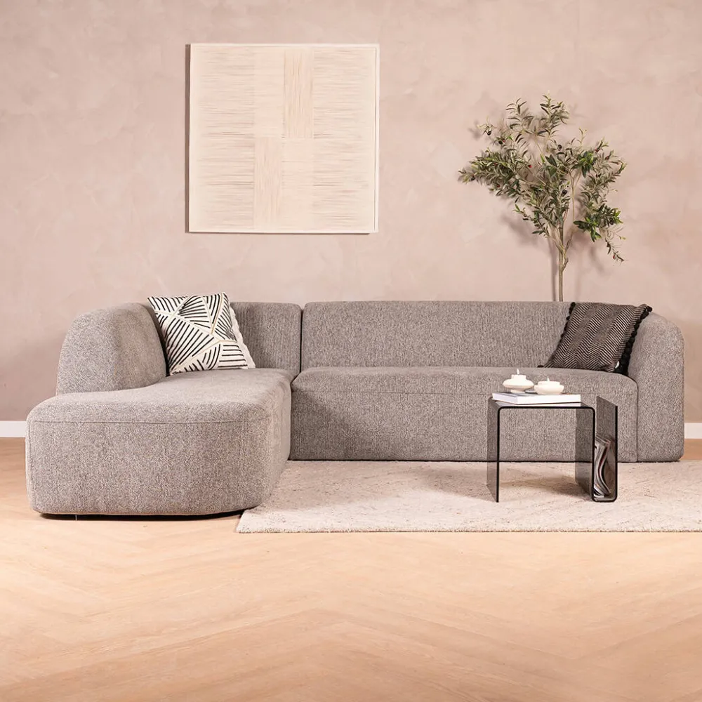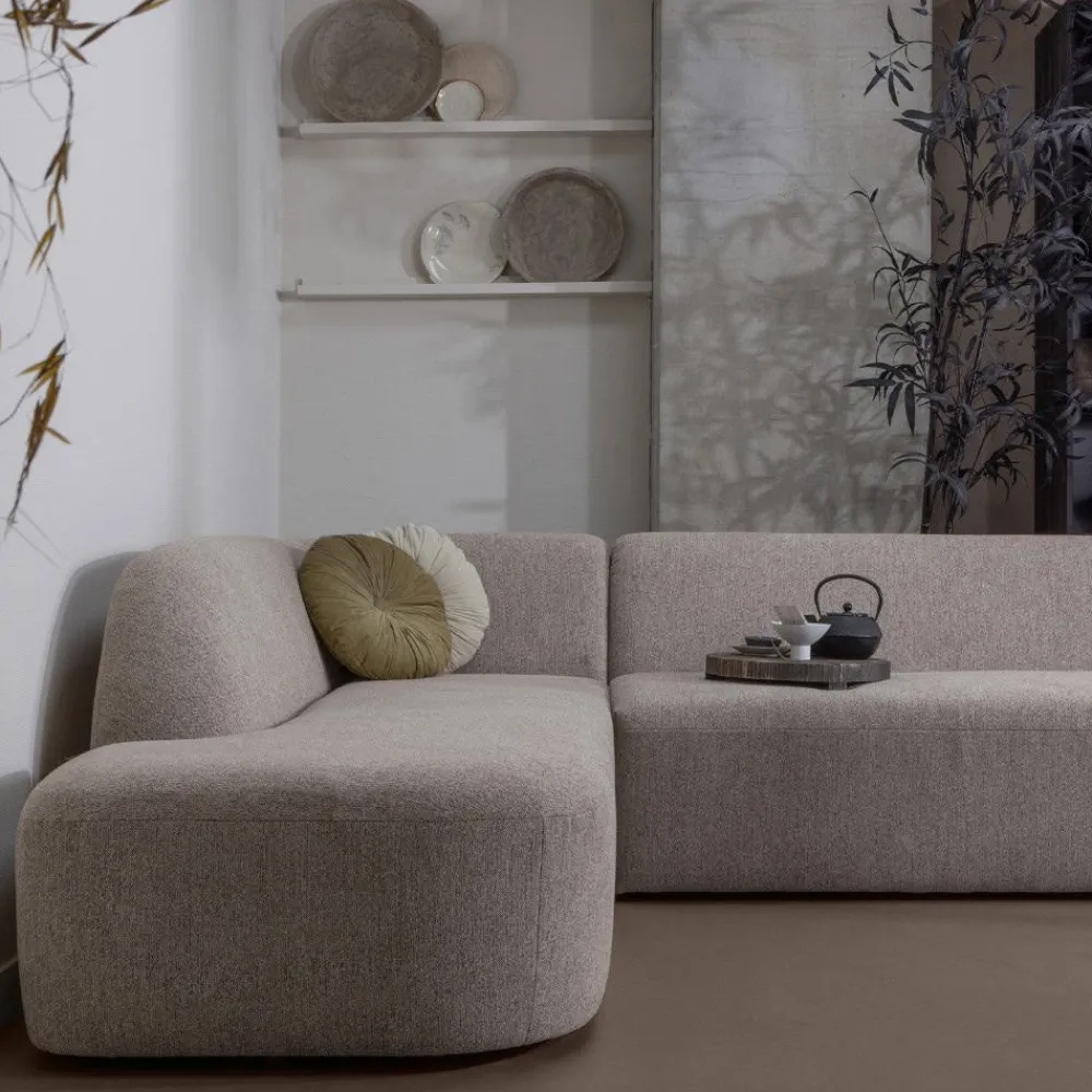 Hoekbank Sloping van HUUS combineert een afgerond en strak design met prettig zitcomfort. De zachte vormen geven de bank een vriendelijke uitstraling, terwijl het moderne silhouet zorgt voor een eigentijdse look. Daardoor past deze hoekbank moeiteloos binnen uiteenlopende woonstijlen, van modern tot warm en sfeervol.