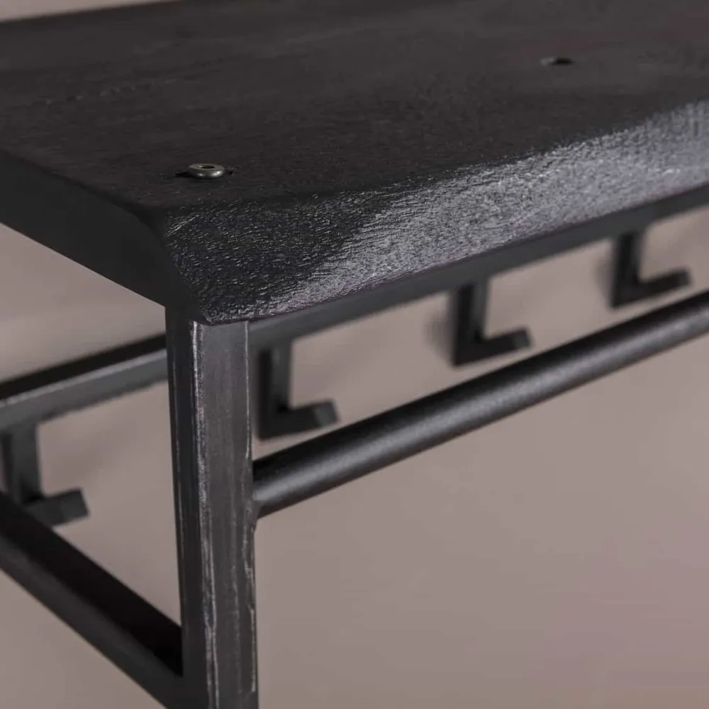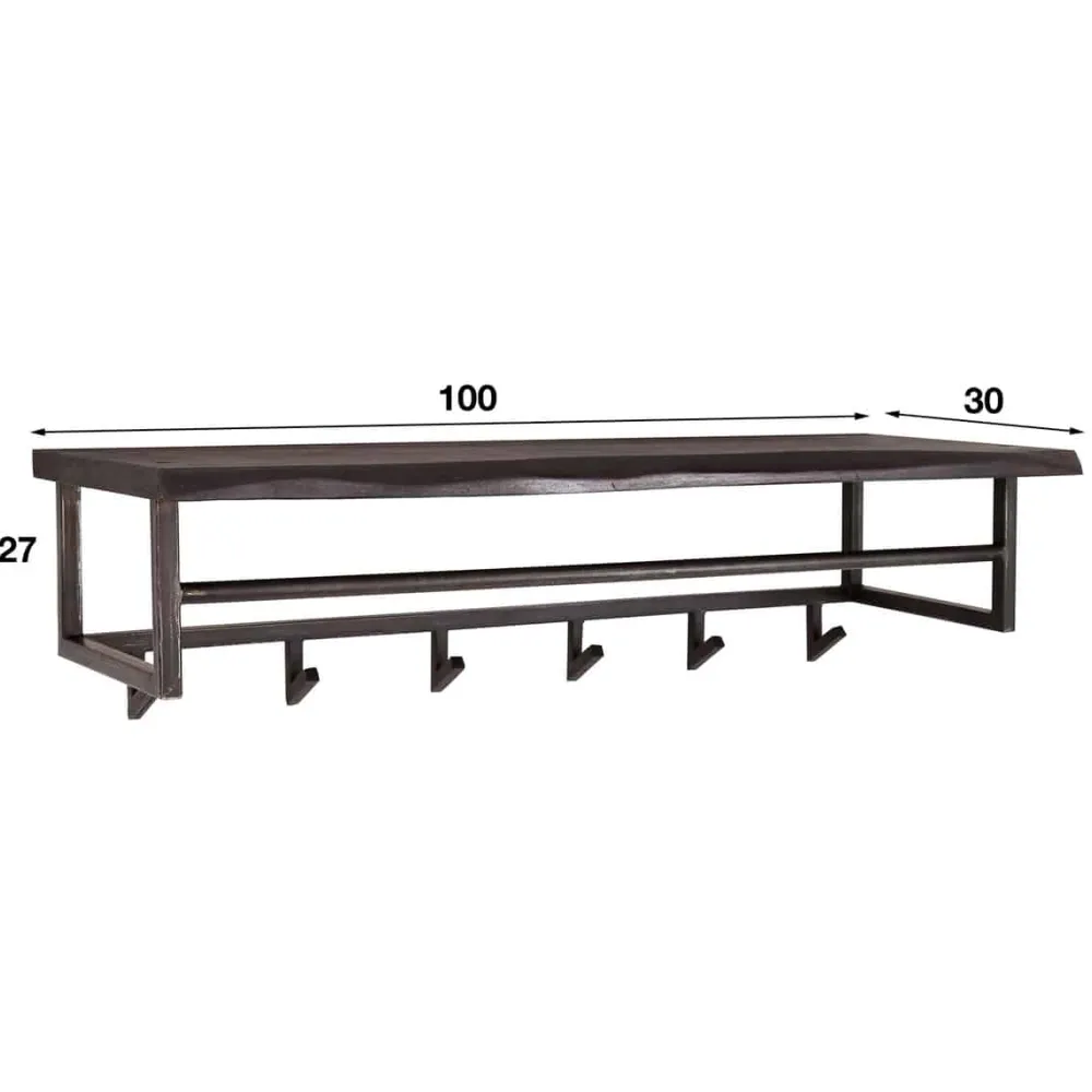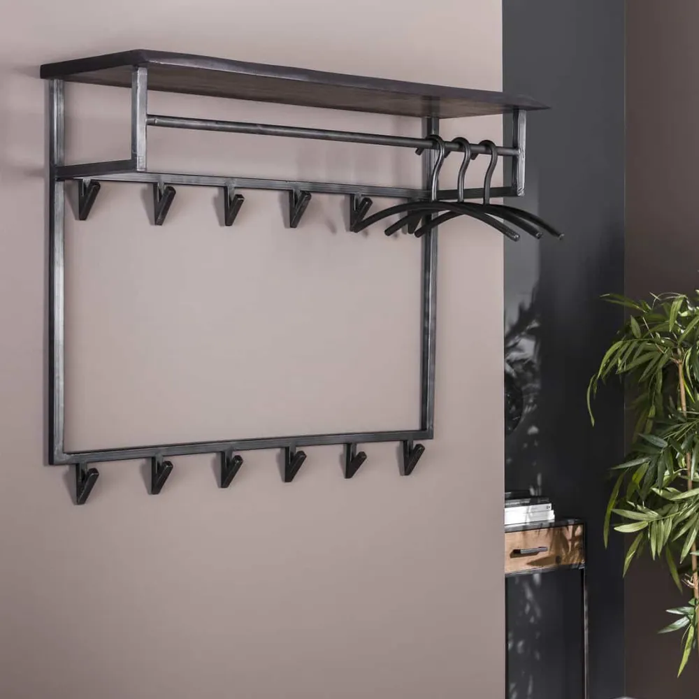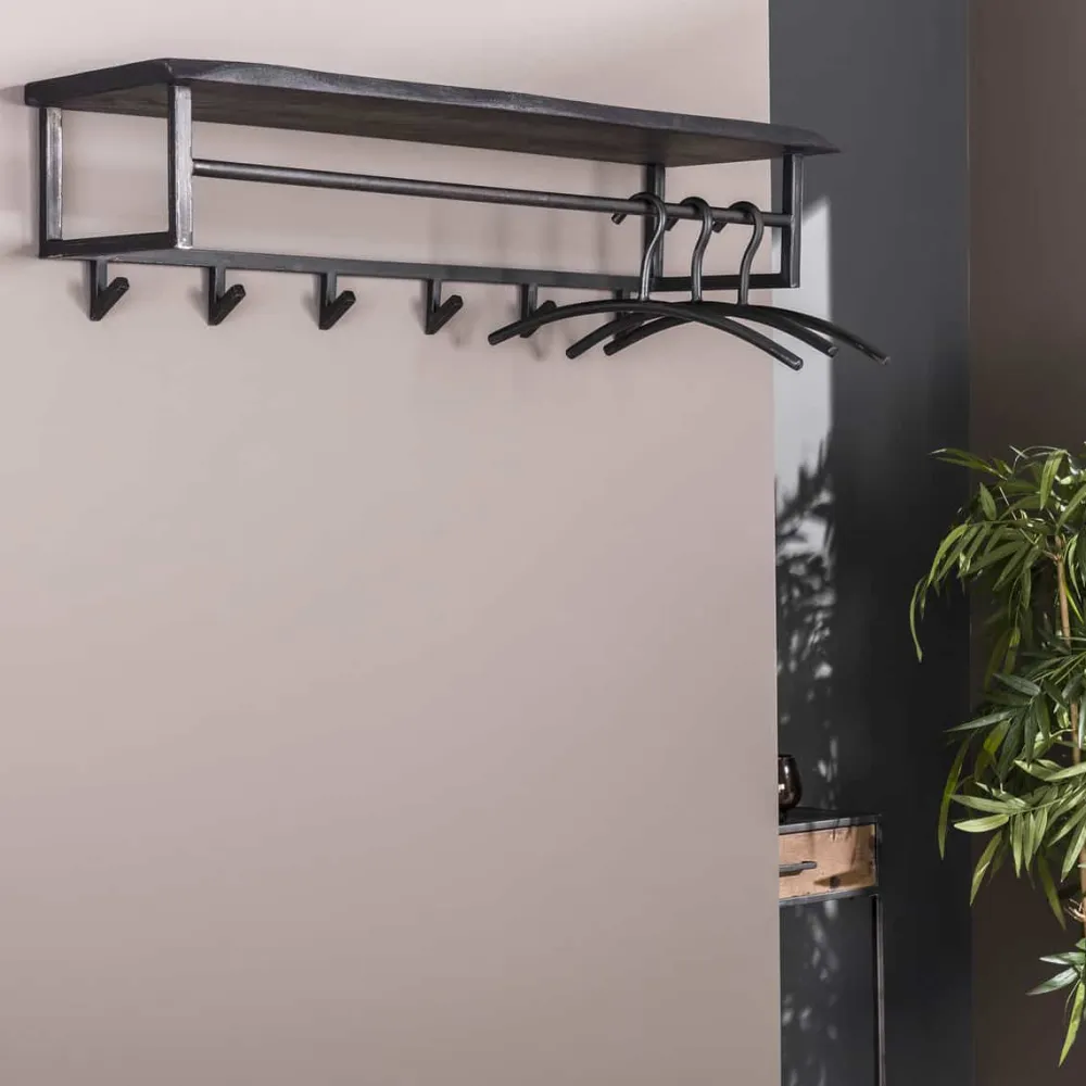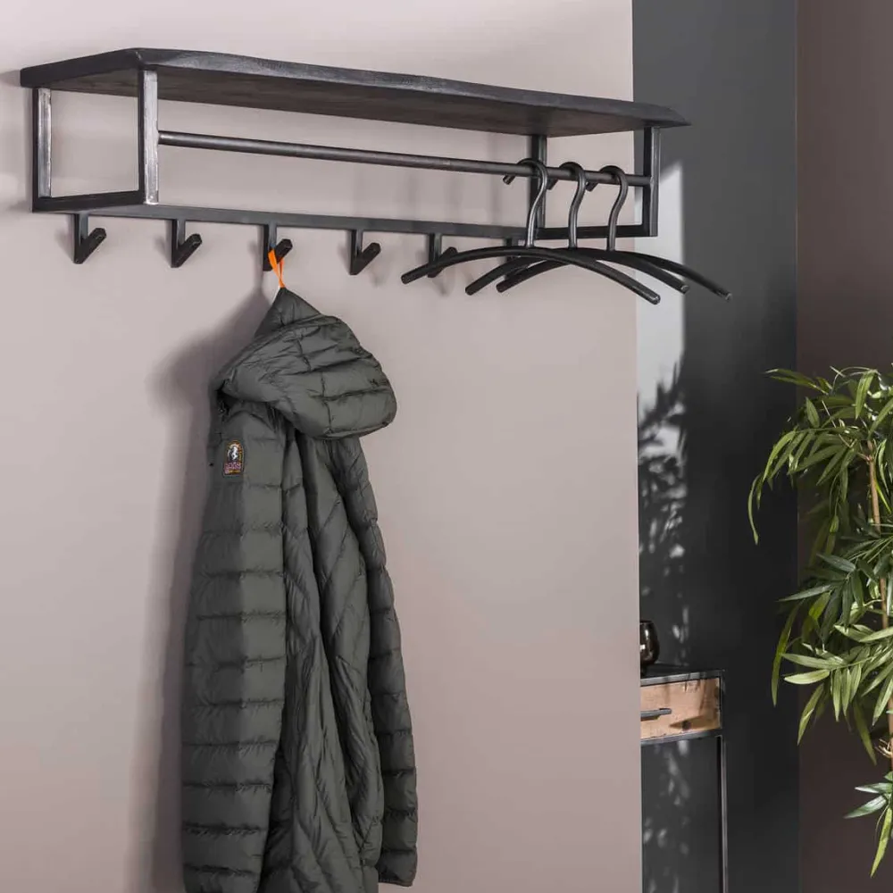 Kapstok Yuki is voorzien van een hoedenplank gemaakt van massief acacia hout. Zorgvuldig geselecteerd hout, voorzien van een fijne nerf en diverse noesten, die op ambachtelijke wijze wordt verwerkt met een zwarte finish. Dit zorgt voor een natuurlijke én unieke look aan de wand. Aan de hoedenplank is een geschuurde metalen roede bevestigd en zijn er 6 of 12 haakjes aanwezig. Er kunnen dus zowel jassen aan een haakje als aan een hanger worden opgehangen. De kapstok is voorzien van twee bevestigingsogen aan de achterzijde, zodat de kapstok eenvoudig aan de wand kan worden gemonteerd.