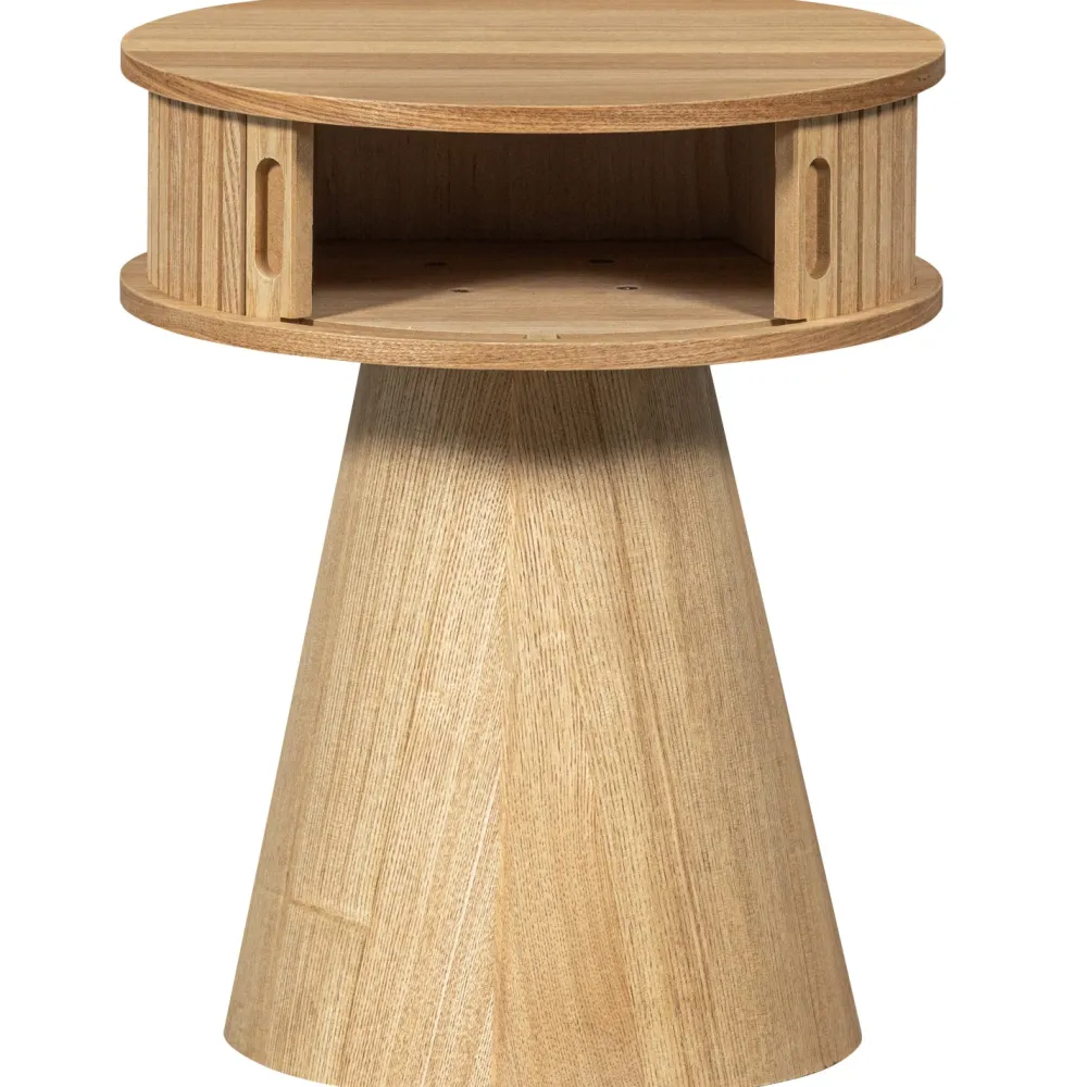 Het Karri nachtkastje komt uit de collectie van het Nederlandse interieurmerk WOOOD en is stijlvol door het unieke design. Gemaakt van populierenhout, biedt het kastje een warme, natuurlijke uitstraling die naadloos aansluit bij verschillende interieurstijlen. Bovendien biedt het Karri nachtkastje praktische opbergruimte achter de aanwezige schuifdeurtjes. De doordachte indeling zorgt ervoor dat je essentials altijd binnen handbereik zijn, terwijl je slaapkamer netjes en georganiseerd blijft.