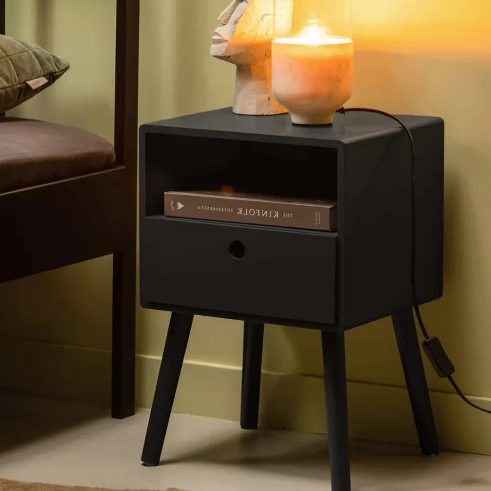 Het Ozzy nachtkastje komt uit de collectie van het Nederlandse interieurmerk WOOOD en is onopvallend stijlvol door het eenvoudige design. Het gebruik van het afgelakte MDF hout zorgt ervoor dat het nachtkastje kalmte uitstraalt en zich gemakkelijk in de stijl van jouw slaapkamer voegt.