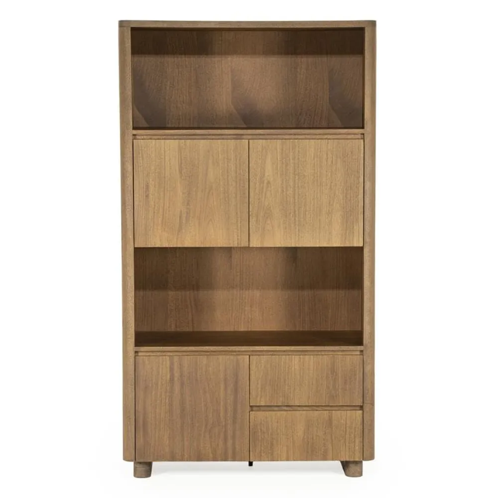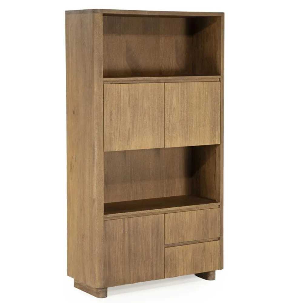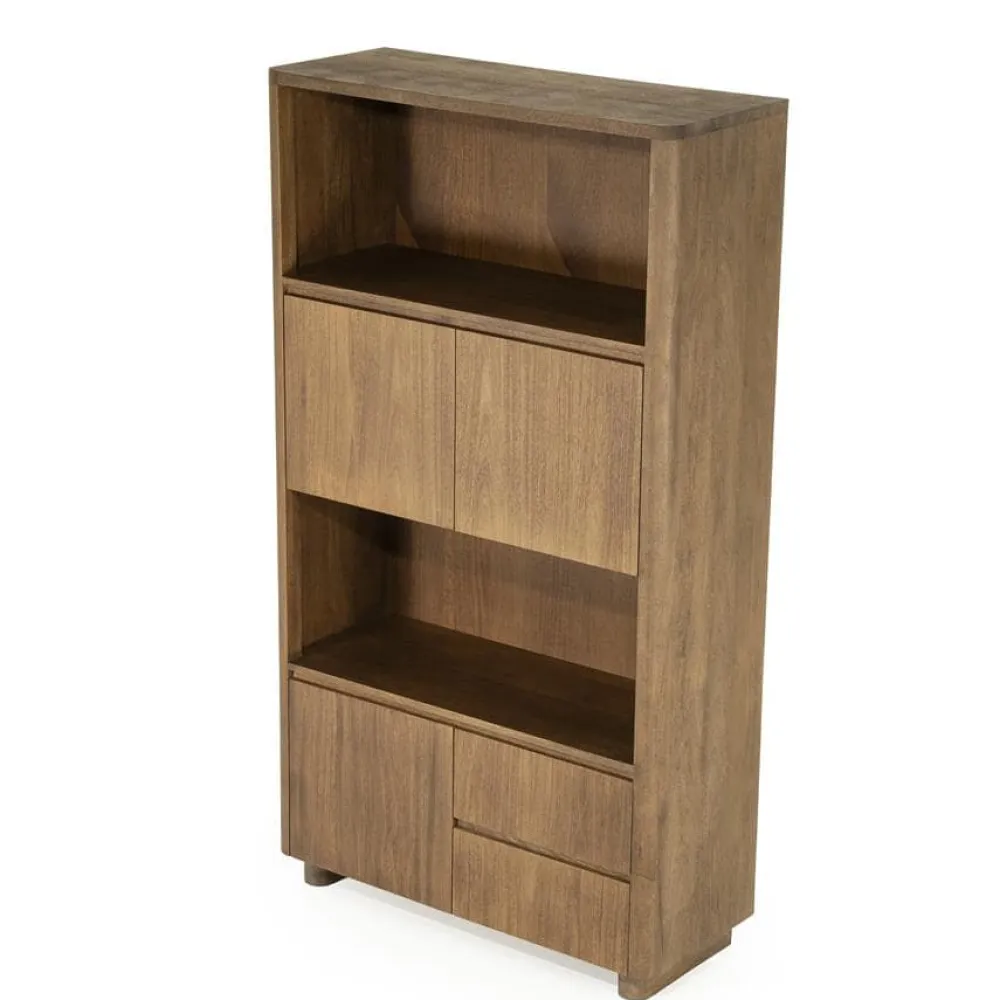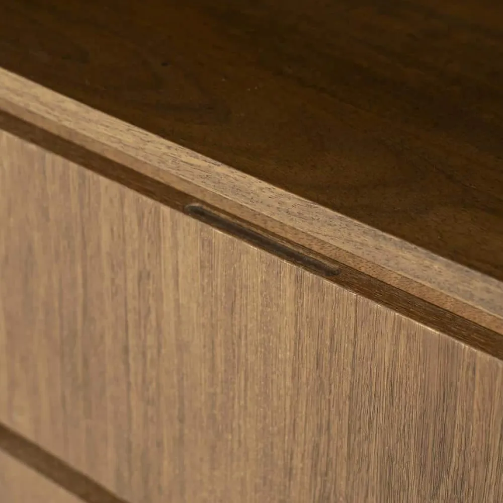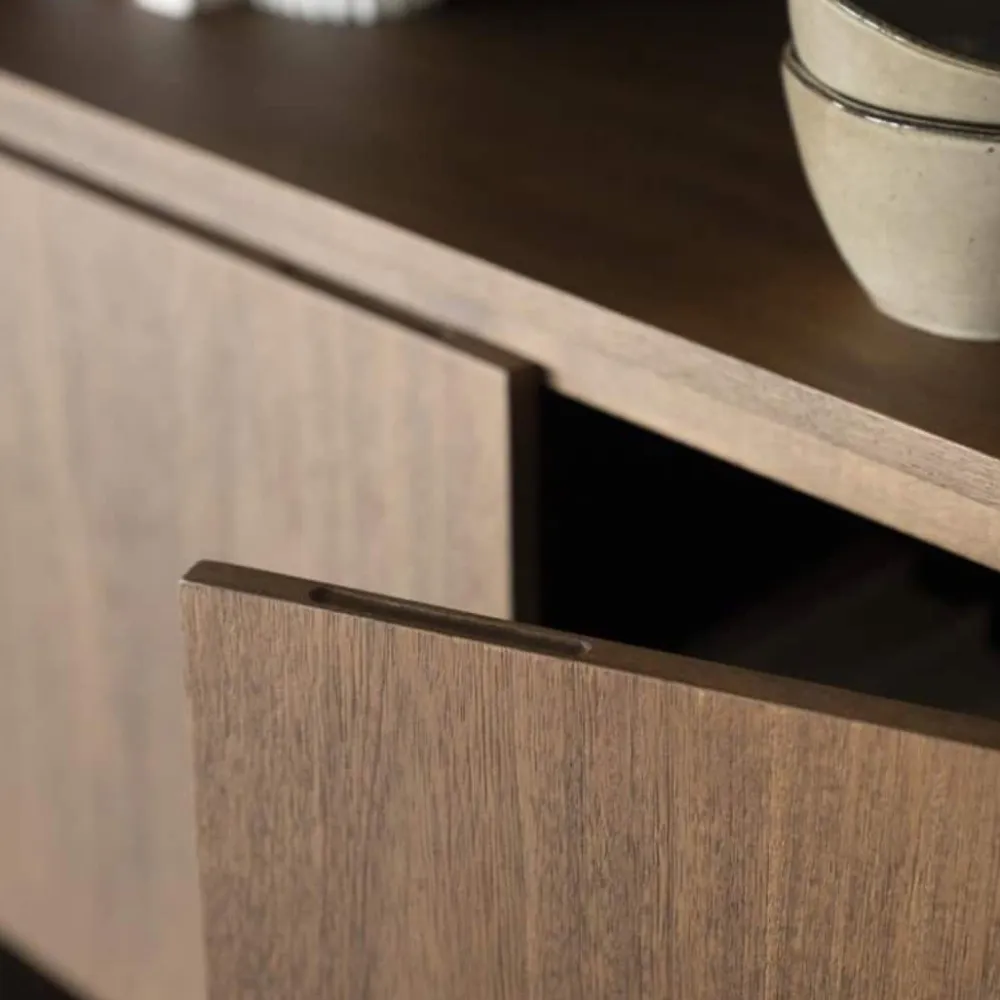 De opbergkast Edward is gemaakt van geborsteld mangohout en straalt warmte en karakter uit. Het moderne, minimalistische design wordt gecombineerd met praktische opbergruimte: achter de deuren en in de lades kun je makkelijk spullen uit het zicht opbergen, terwijl de open vakken ideaal zijn voor decoratie of boeken. Met Edward haal je een stijlvolle opberger in huis die past in elk interieur.