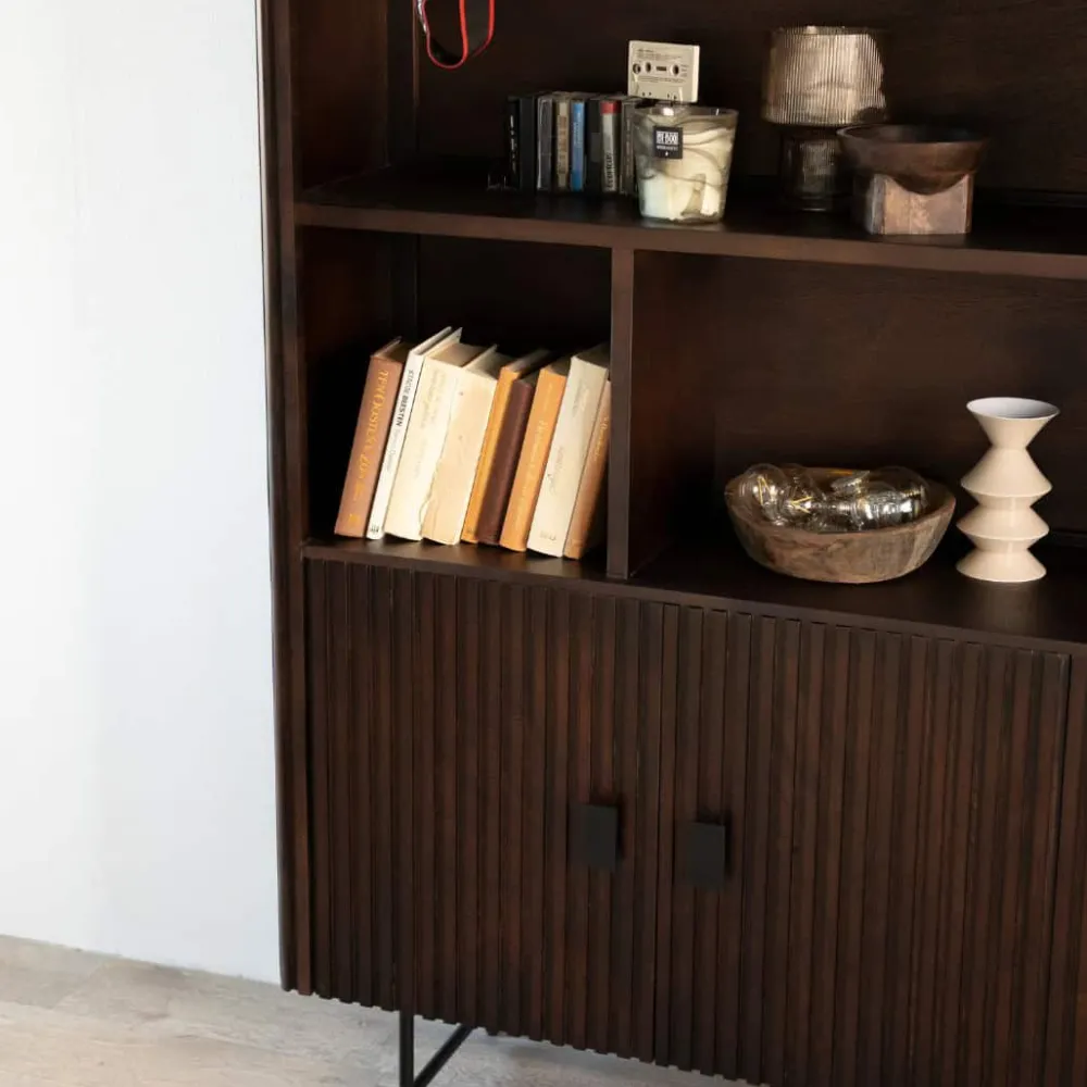 Met de Remi wandkast haal je moeiteloos stijl en bruikbaarheid in huis. Deze kast biedt genoeg ruimte voor je geliefde boeken, decoratieve snuisterijen en nog veel meer. Het strakke metalen frame geeft een moderne uitstraling, terwijl de warme houten planken een gezellige ambiance toevoegen. Of je nu de woonkamer, studeerkamer of slaapkamer wilt opfleuren, de Remi wandkast past perfect bij elk interieur. Breng flair en functionaliteit samen met de Eleonora Remi wandkast voor een huis dat helemaal af is.