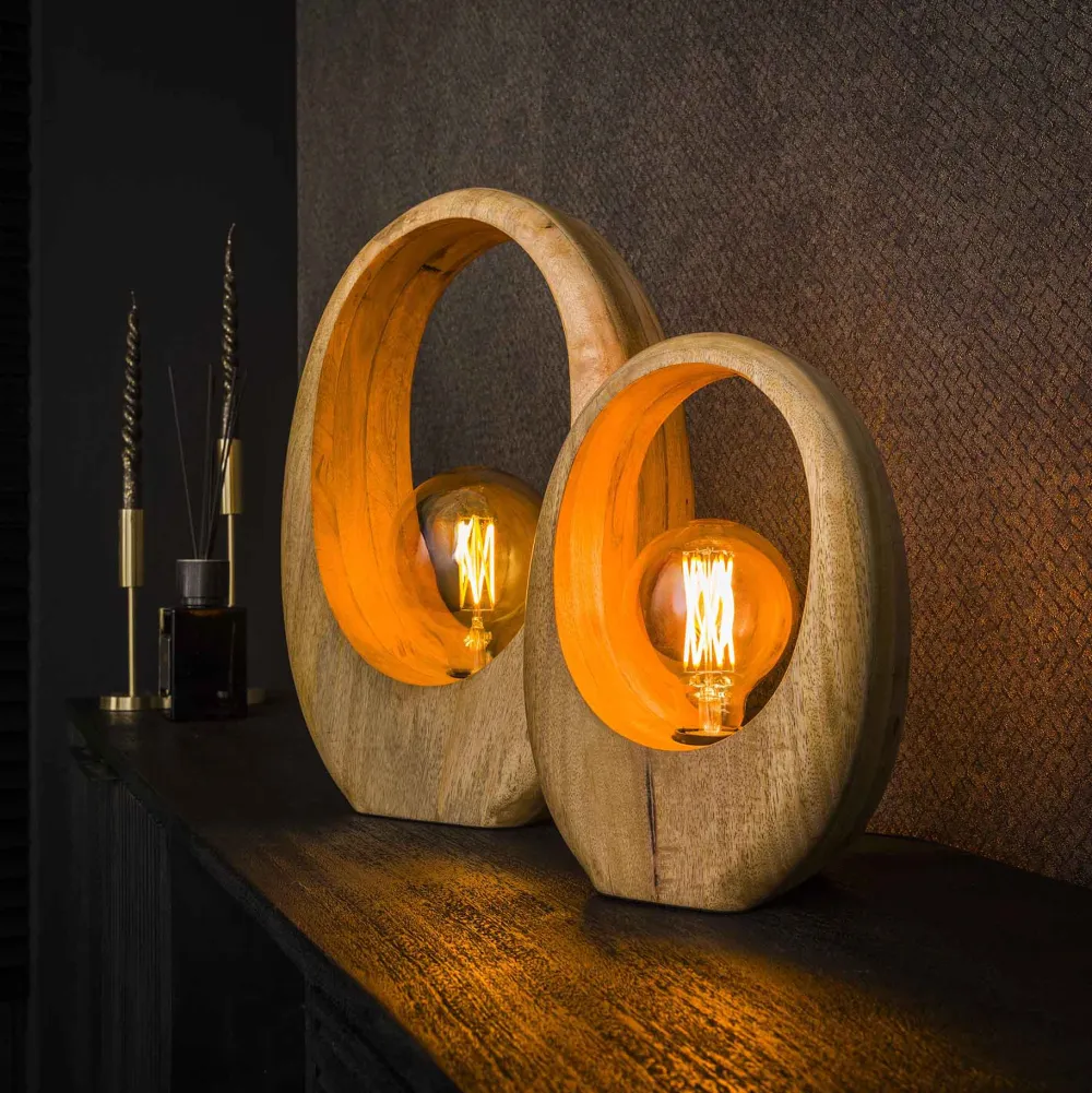 Deze trendy tafellamp Amber is uitgevoerd in mango hout. De houten opening waar de lichtbron wordt geplaatst, geeft een sfeervolle licht verdeling. Deze lamp heeft ook nog een grotere variant. Deze lampen zijn erg leuk met elkaar te combineren.