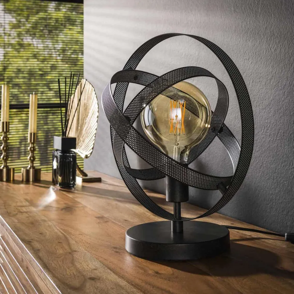 Deze tafellamp Arthur is uitgevoerd in metaal met een artic black finish. De drie ringen kunnen plat gedraaid worden, waardoor het een heel klein pakket wordt. Daarnaast geeft dit ook de mogelijkheid om de lamp naar eigen inzicht te plaatsen. Er wordt aanbevolen LED lichtbron filament bol 12.5cm te gebruiken.
