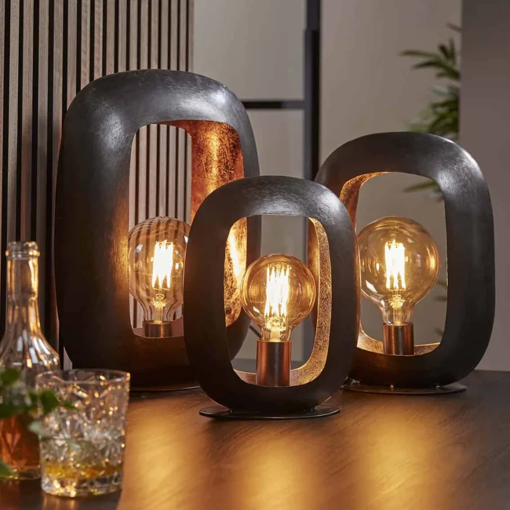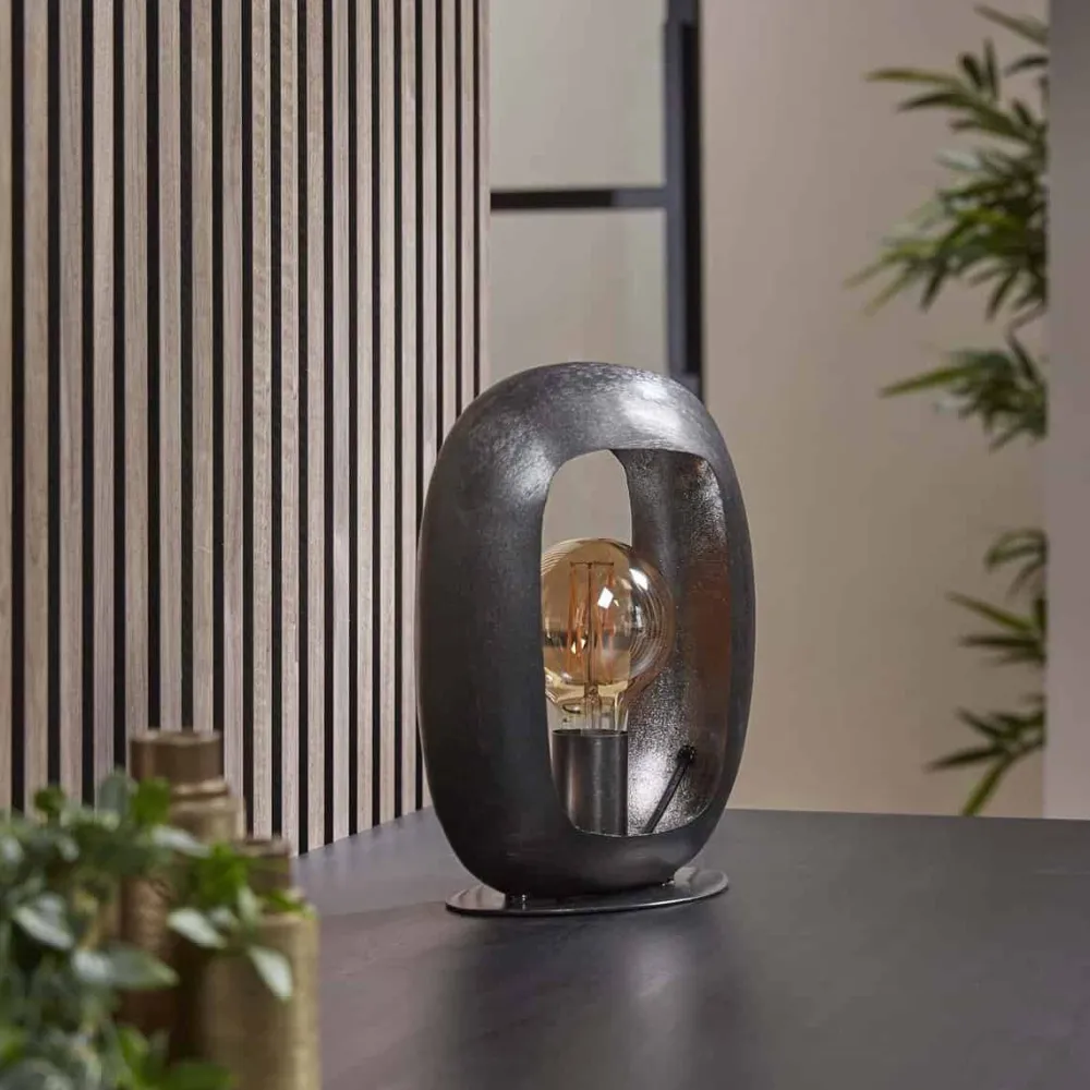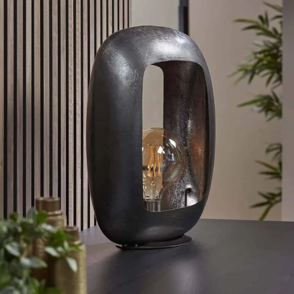 Deze tafellamp Ayden is uitgevoerd in metaal met een zwart nikkel finish. Binnenin is gebruik gemaakt van een ‘zilver’ look finish wat zorgt voor een mooie en versterkte uitstraling van het licht. Deze lamp is in drie verschillende maten uitgevoerd.