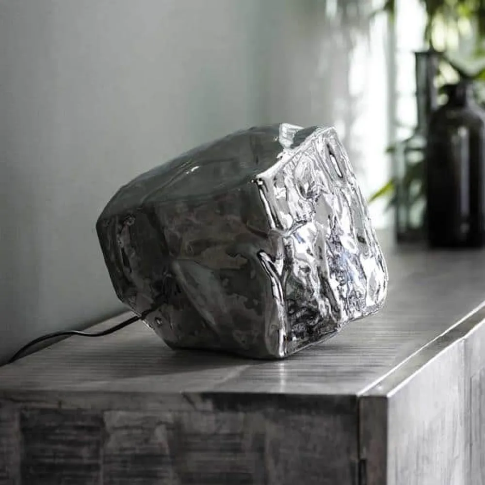 De tafellamp Rocco springt echt in het oog. De tafellamp is gemaakt uit mond geblazen glas. De lamp heeft een kleine opening waardoor de lichtbron door middel van een klein frame in het armatuur gezet kan worden. Deze tafellamp maakt deel uit van de Rocco serie welke is uitgevoerd in helder en chrome.