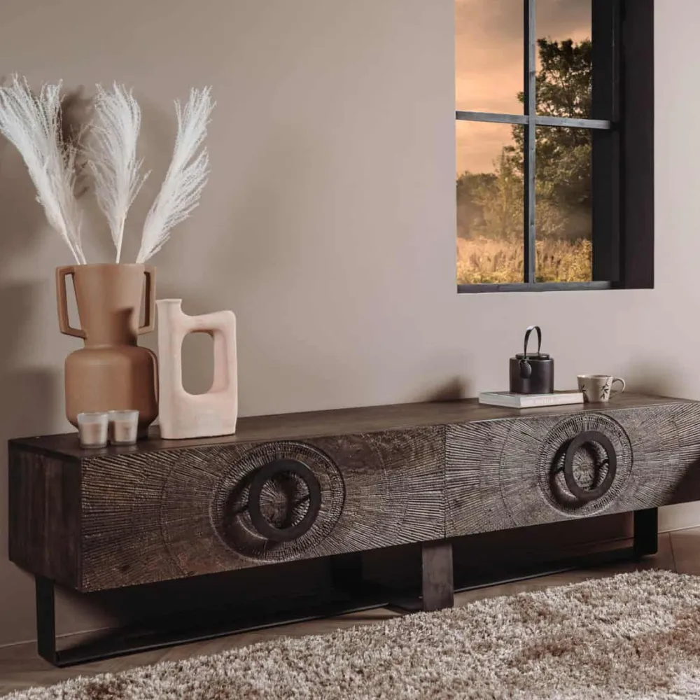 Houtsnijwerk is al een tijdje populair. Gemaakt van massief mangohout. Bij deze