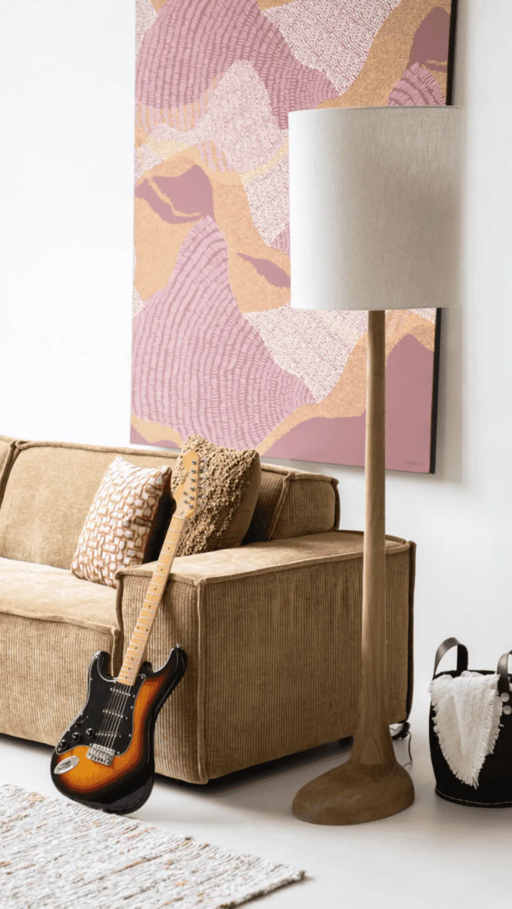 Het slanke en minimalistische ontwerp maakt de Rine een veelzijdige keuze die moeiteloos in verschillende interieurstijlen past, van modern tot boho-chic. Dankzij de stevige voet staat de lamp stabiel, terwijl de linnen kap bijdraagt aan een subtiele en verfijnde uitstraling.
