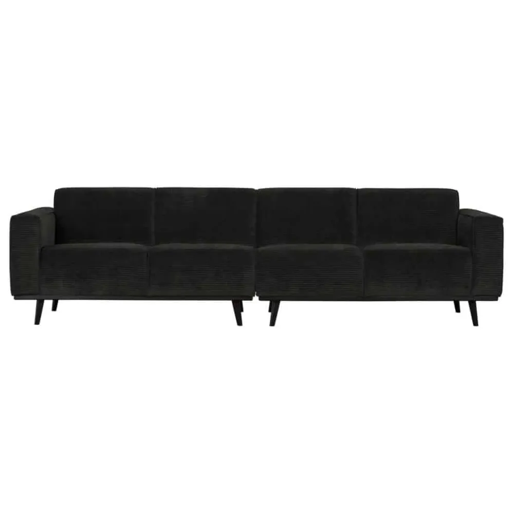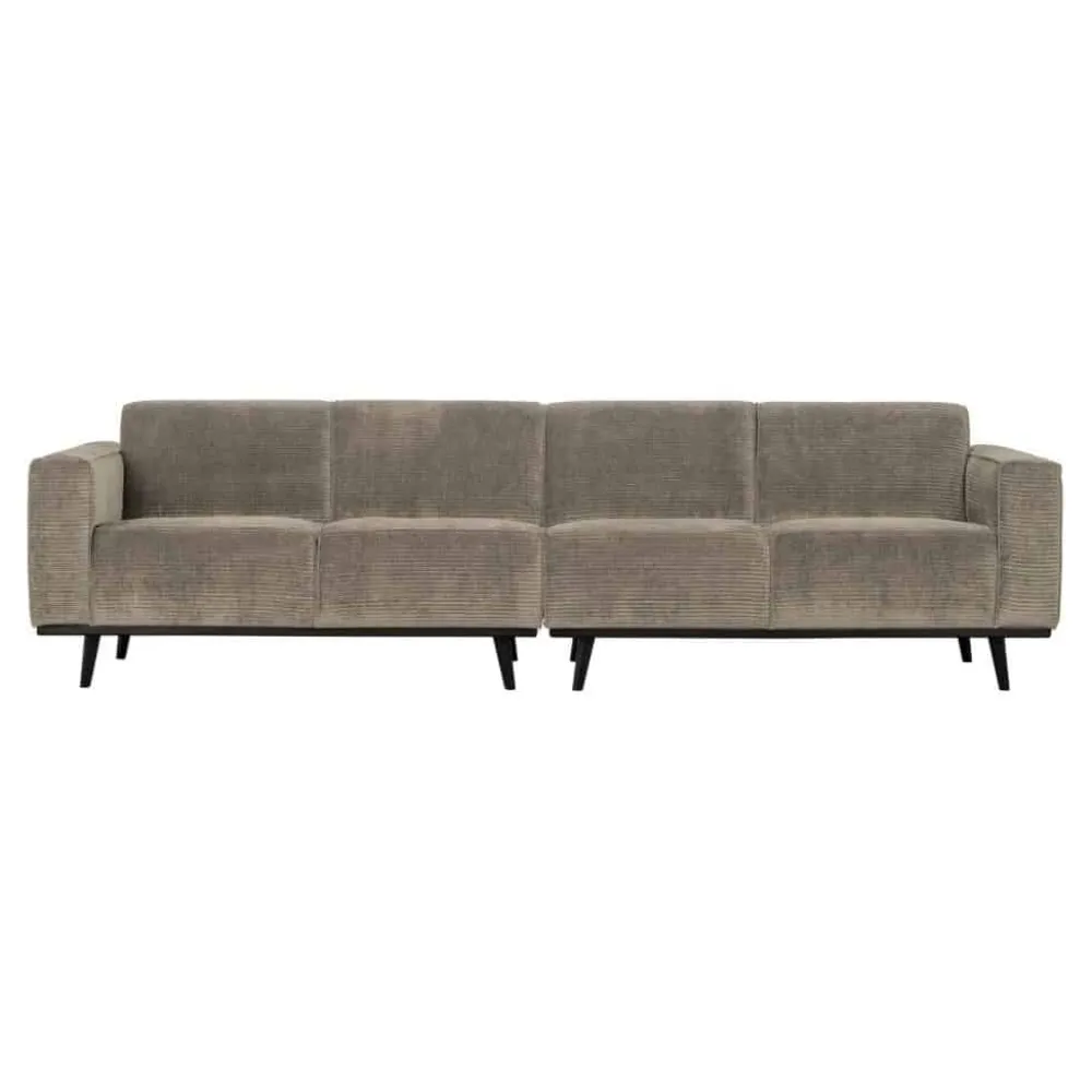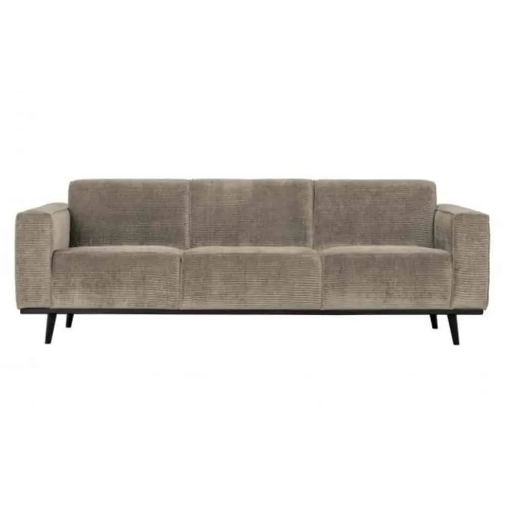 De bank is bekleed met zachte ribstof en verkrijgbaar in stoere tinten zoals grijs, zwart, taupe, groen en warm groen. Deze ribstof voegt niet alleen textuur toe, maar zorgt ook voor een comfortabel zitgevoel. De royale zitruimte biedt volop plek om samen te zitten of heerlijk te ontspannen. Daarnaast dragen de stevige constructie en hoogwaardige materialen bij aan langdurig zitplezier, zodat de bank geschikt is voor dagelijks gebruik.