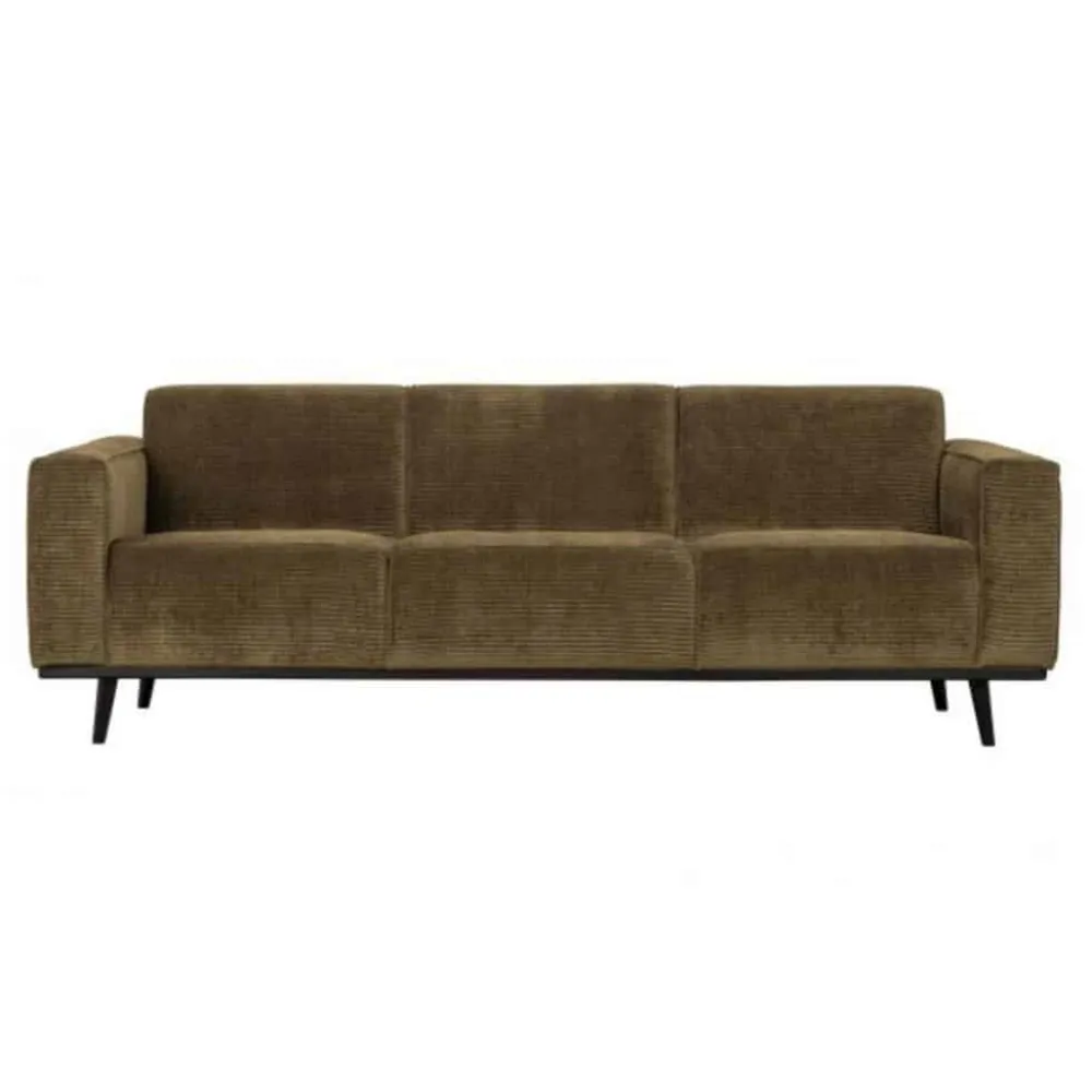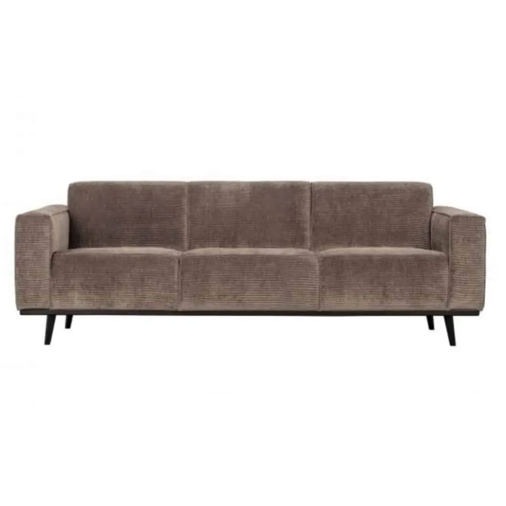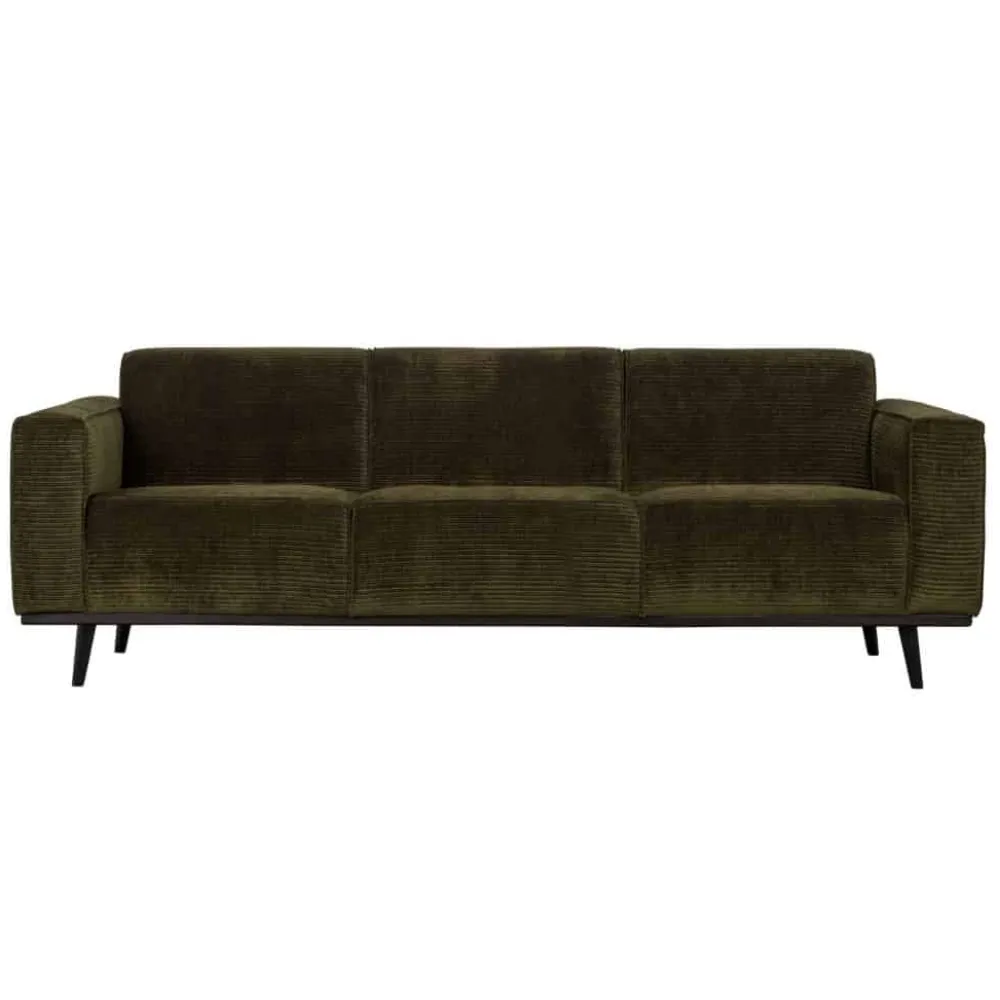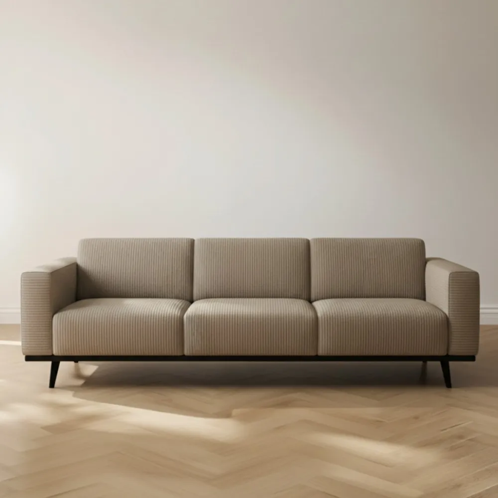 De bank is bekleed met zachte ribstof en verkrijgbaar in stoere tinten zoals grijs, zwart, taupe, groen en warm groen. Deze ribstof voegt niet alleen textuur toe, maar zorgt ook voor een comfortabel zitgevoel. De royale zitruimte biedt volop plek om samen te zitten of heerlijk te ontspannen. Daarnaast dragen de stevige constructie en hoogwaardige materialen bij aan langdurig zitplezier, zodat de bank geschikt is voor dagelijks gebruik.