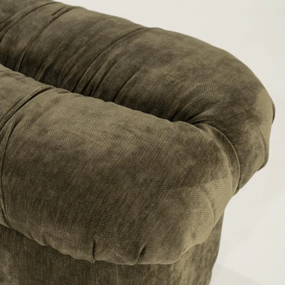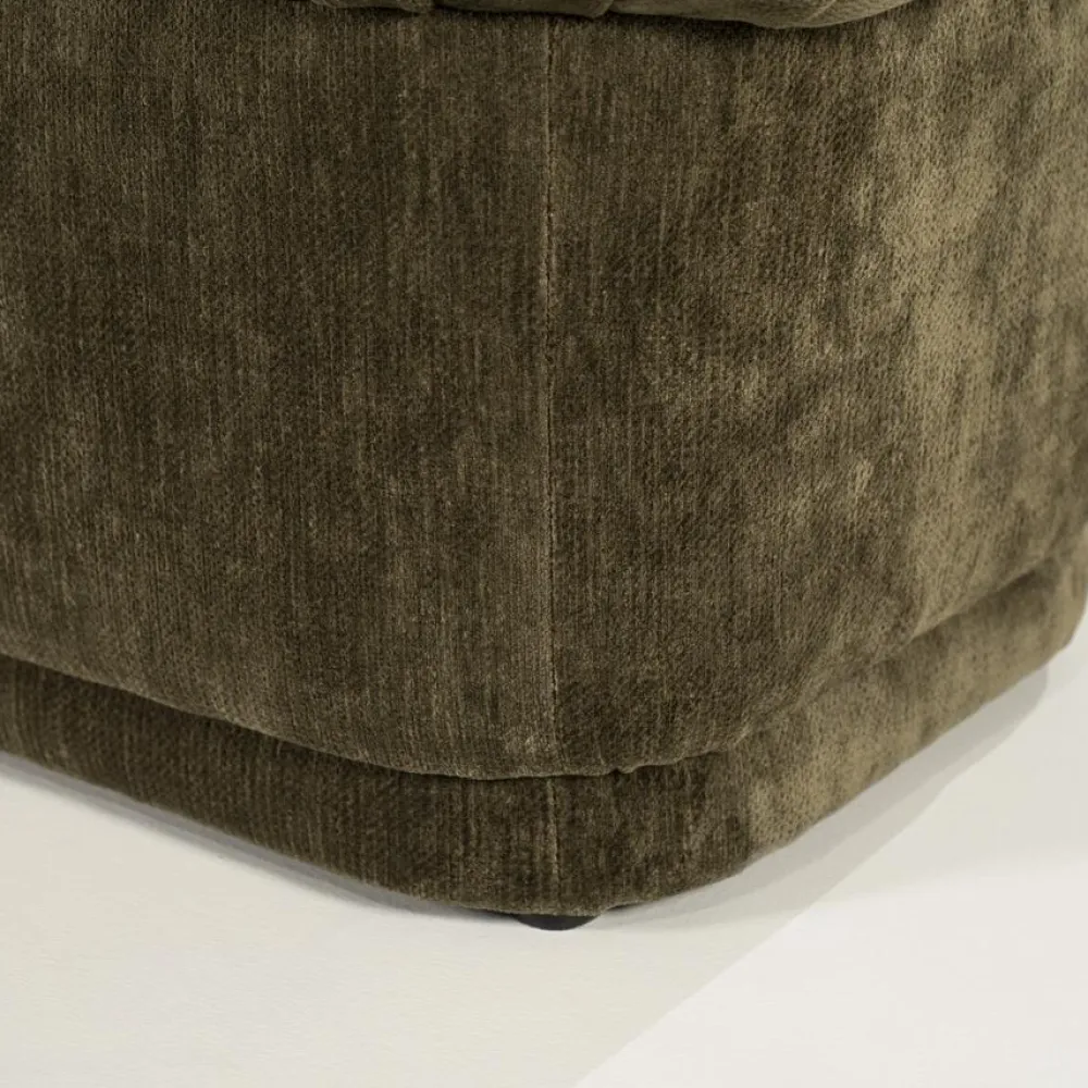 Het bankje is bekleed met een zachte stof die prettig aanvoelt en direct comfort toevoegt aan het interieur. De subtiele plooien en het volumineuze zitvlak geven Nook een speels karakter, terwijl het geheel toch rustig blijft ogen. Daarnaast zorgt de stevige vulling voor een aangenaam zitgevoel, waardoor het bankje niet alleen decoratief is, maar ook praktisch in gebruik. Of je Nook nu gebruikt als extra zitplek, als bankje in de hal of aan het voeteneinde van het bed, het ontwerp blijft comfortabel en in balans.